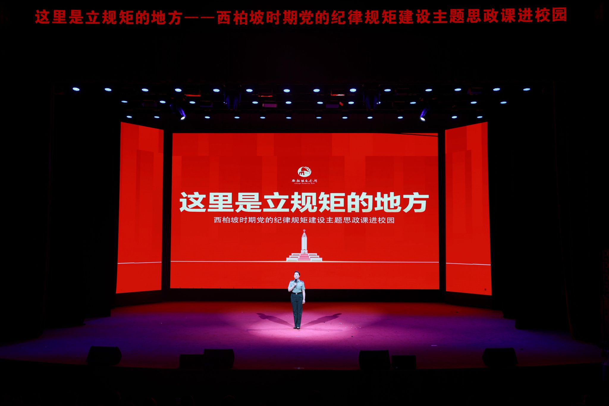 “这里是立规矩的地方”主题思政课是西柏坡纪念馆为深入开展党纪学习教育精心打造的一堂好课。将党中央在西柏坡时期加强纪律规矩建设的生动实践和感人故事作为鲜活教材,分“建立请示报告制度,维护党中央权威”“重申三大纪律八项注意,树立铁军形象”“率先垂范,严于律己作表率”“‘两个务必’‘进京赶考’为全党敲响警钟”四个篇章讲党史故事,通过快板、讲述、小品和歌曲等师生喜闻乐见的形式引思想共鸣,引领广大师生共同感悟西柏坡时期立规矩、强调加强纪律性的启示。现场不时响起阵阵掌声,热烈而经久。
