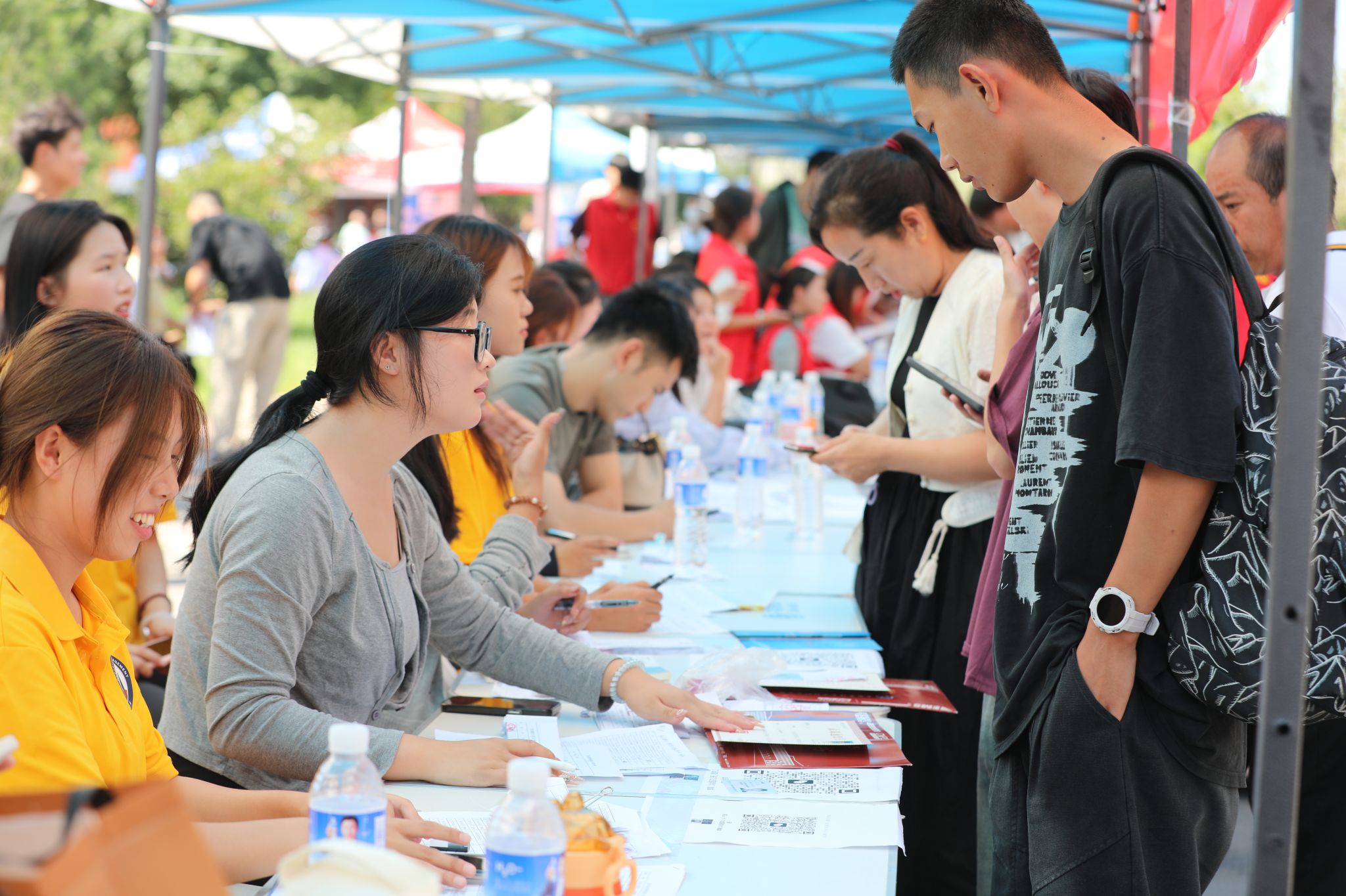 迎新工作是如期而至的守候,更是一次双向奔赴的相见。为全力以赴做好迎新工作,切实增强新生及家长的体验感,学院多次召开专题会议调度部署,坚持将人文关怀放在首位,在保障好新生报到顺利有序的同时,全面面向家长开放图书馆、天健体育馆和昭德礼堂等校内公共场所,让一路奔波的家长拥有片刻休憩,深度感受信工温度。各行政处室和系部各司其职,合力共为,精心组织,细化分工。从帐篷搭建、氛围营造到车辆调度、接站引导,从秩序维护、志愿服务到报到接待、缴费办理、绿色通道,从被褥采购、卫生清洁到医疗救护、餐饮服务,从数据收集、畅通网络到政策咨询、宣传报道,穿梭于人群中,忙碌而喜悦,为新生及家长提供全方位、一体化服务,倾情周到,细致入微。