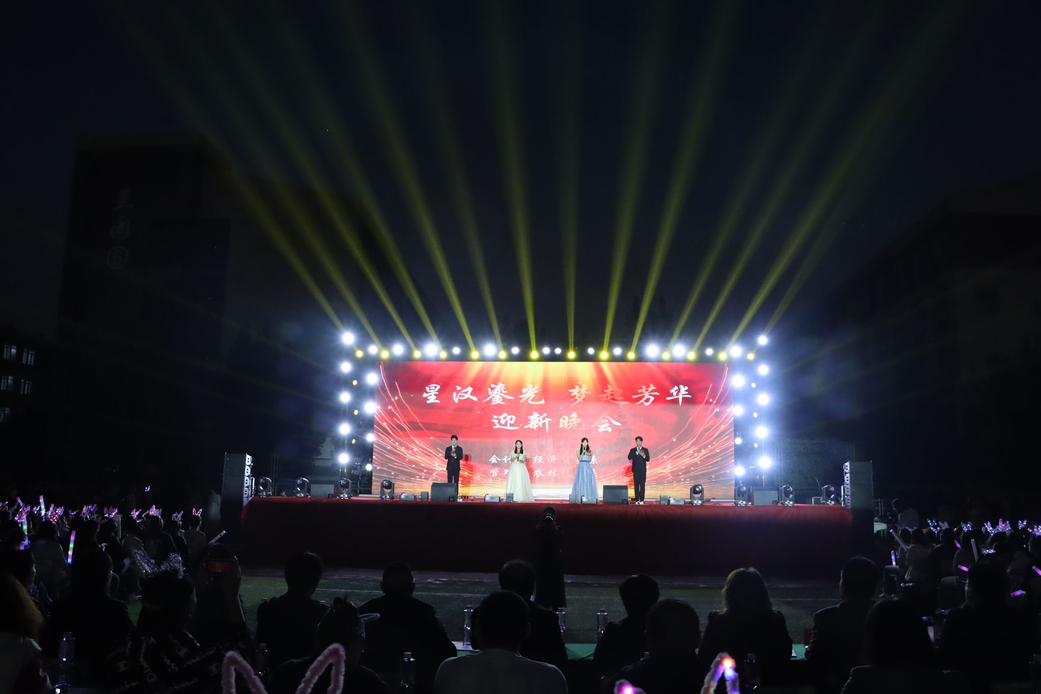 秋意渐浓,夜星闪耀。9月24日晚,会计系、管理系、经济贸易系以及农林牧医系联合举办的“星汉鎏光·梦起芳华”2024年迎新生文艺晚会在学院东区操场上拉开帷幕。这是一场集文化、艺术于一体的视听盛宴,旨在欢迎来自五湖四海的新同学们,并为他们的大学生活注入第一抹色彩。