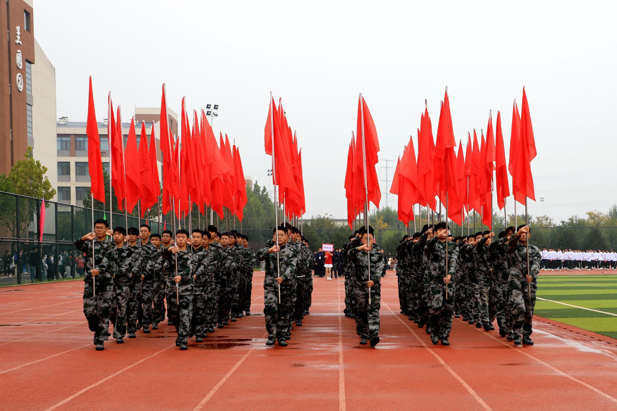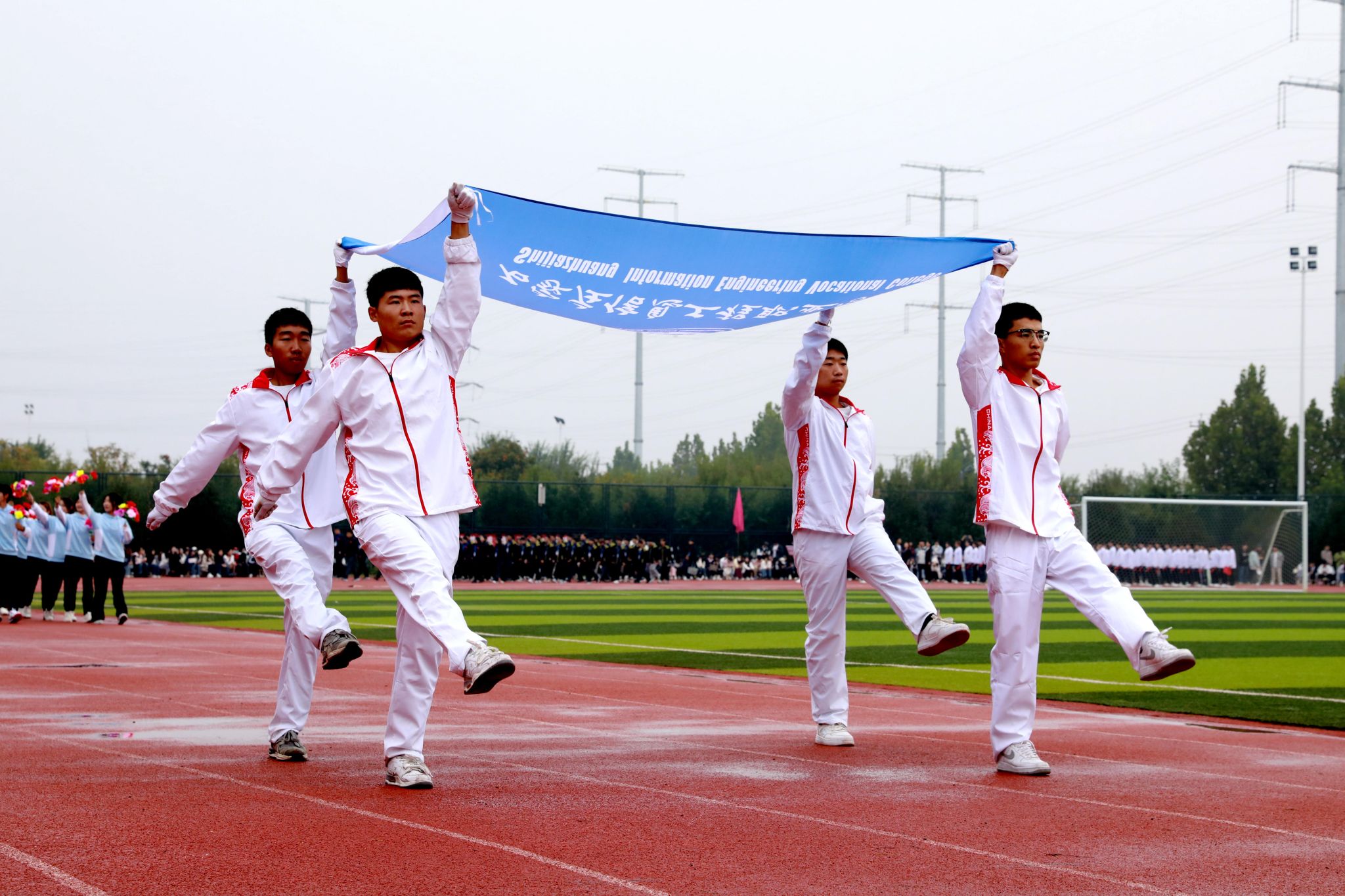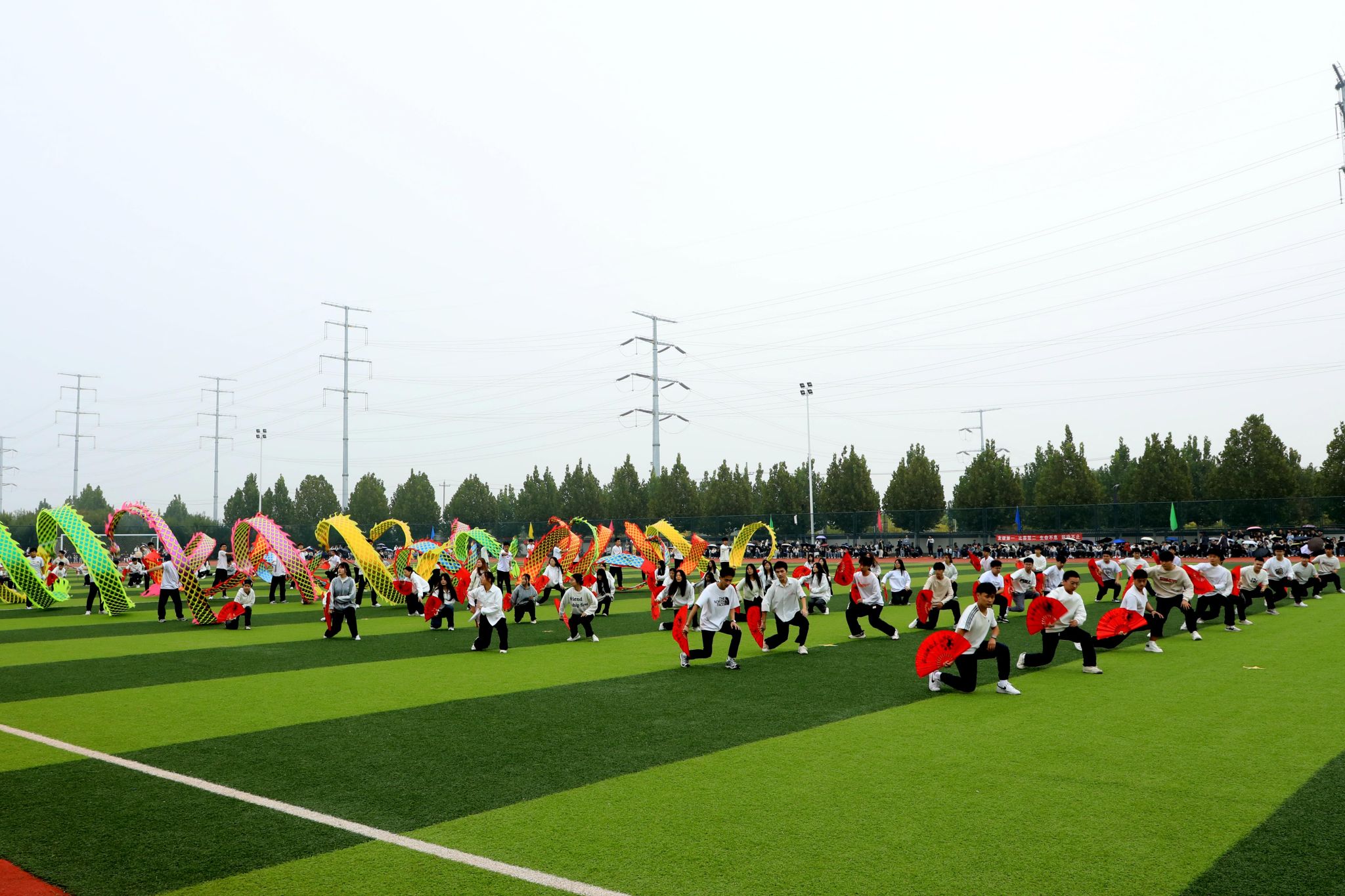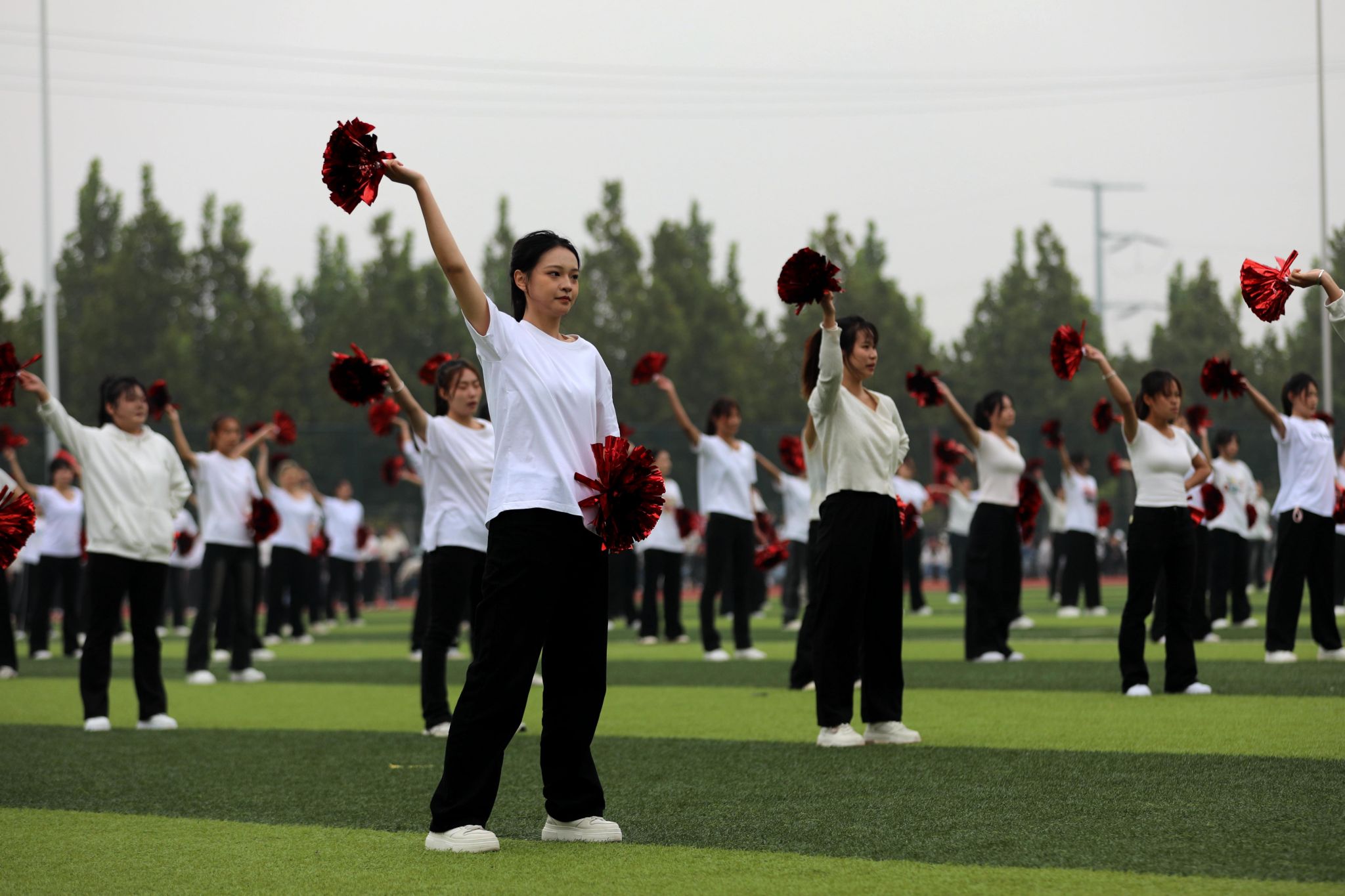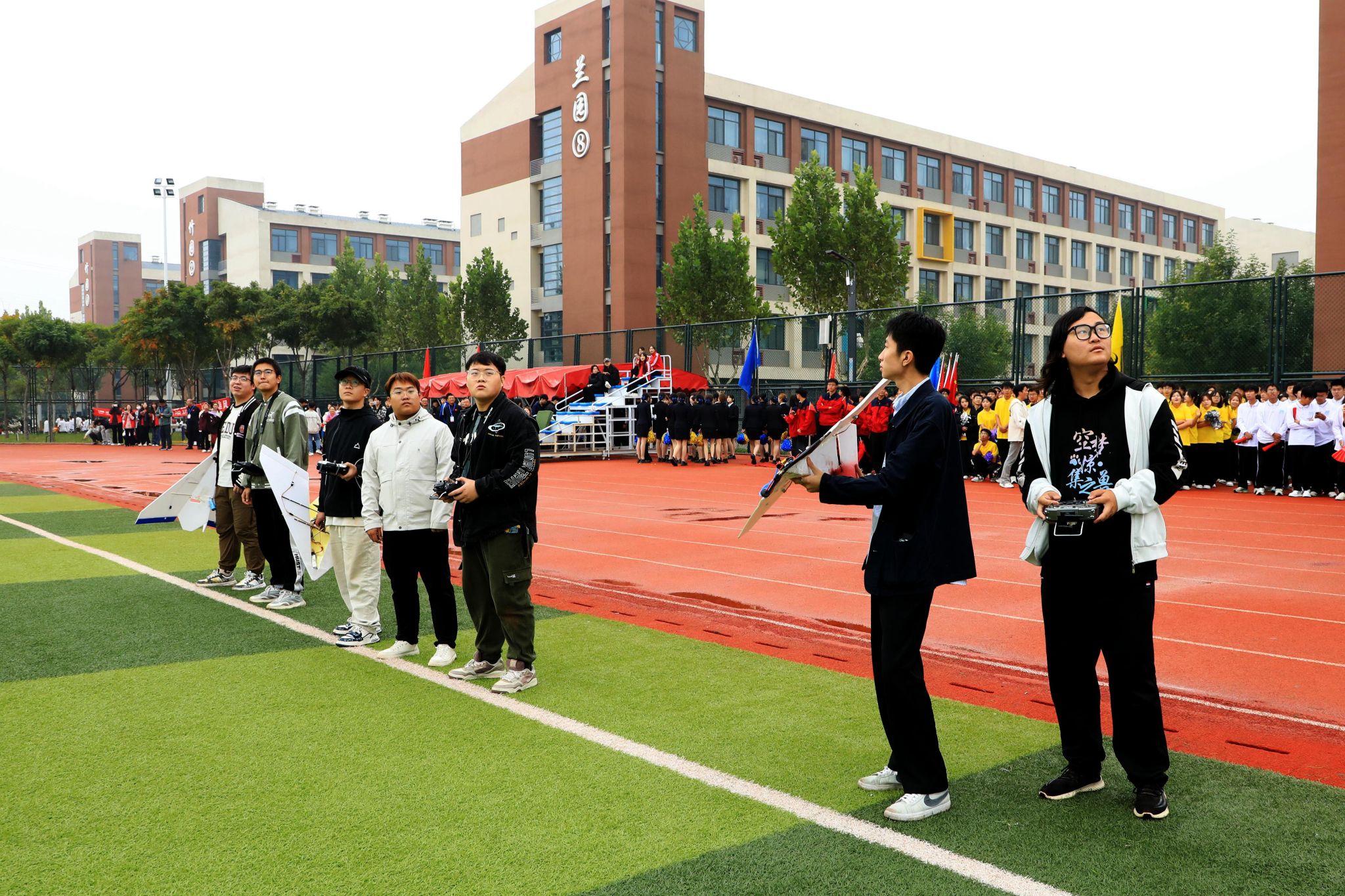 燃动青春,尽情绽放。啦啦操表演《舞动青春》手持闪耀的花球涌向绿茵场,以整齐划一的动作、充满活力的舞姿瞬间点燃现场气氛;瑜伽表演《舞韵瑜伽》以其清新而宁静、优雅与深邃传递出身心平衡、和谐共生的理念;传统武术表演《龙飞扇舞》时而昂首阔步,时而腾空而跃,刚柔相济,动静交错;航模表演引擎轰鸣,同学们亲手制作的各式航模在空中自由翻转、你追我赶,划出一道道优美的彩色曲线,展示了高超的飞行技巧和团队协作能力。掌声经久不息,喝彩声此起彼伏。