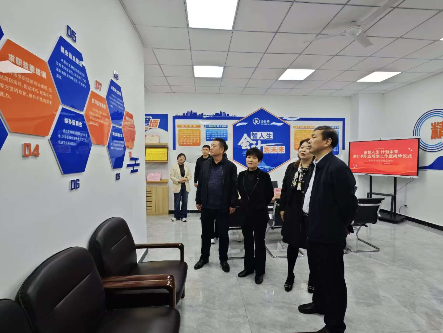 10月30日上午,会计系在知新3号楼举行“会智人生”职业规划工作室的揭牌仪式,副院长刘占红、纪委书记赵惠娟出席。