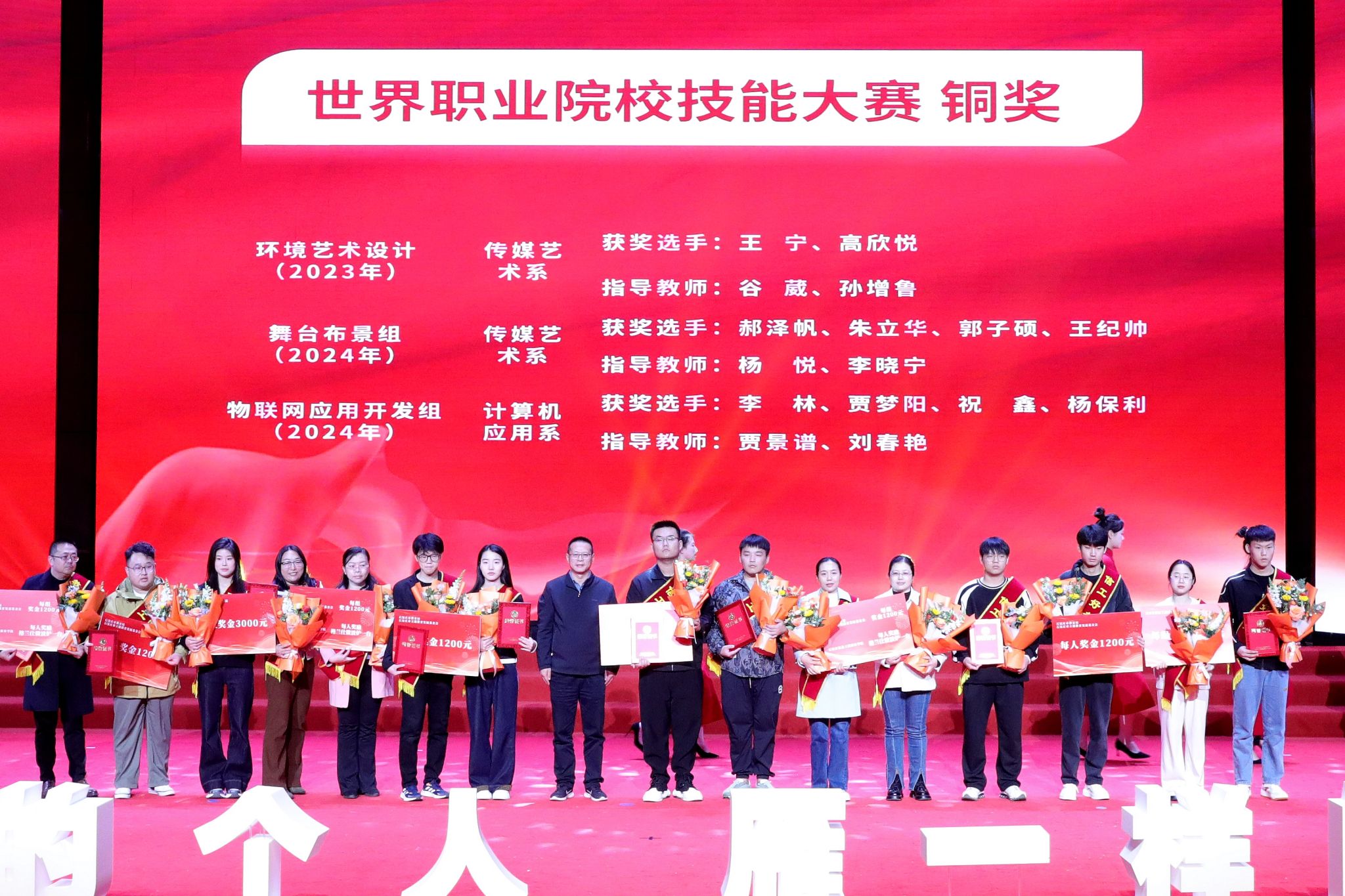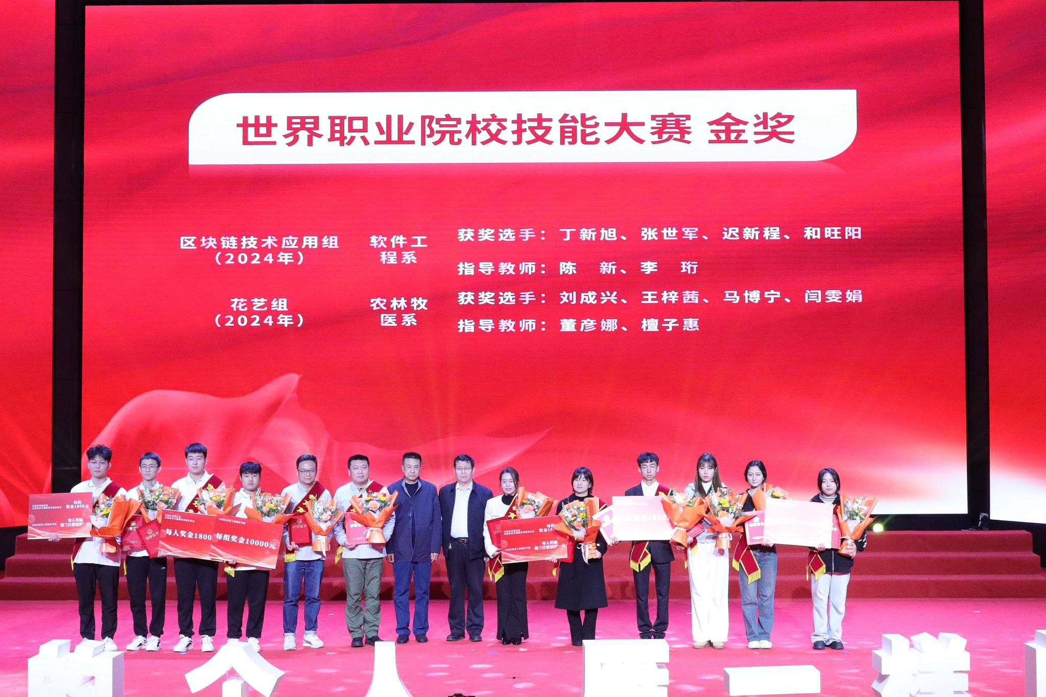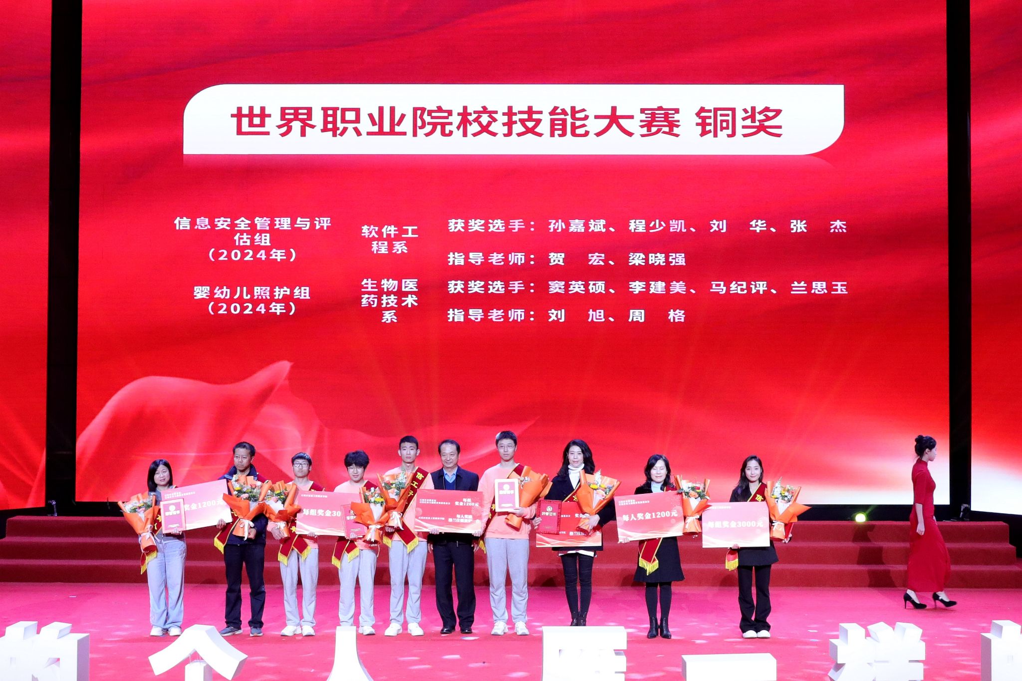 大会宣读了《中共以诚为本赢在信誉9001cc委员会关于表彰2023年全国职业院校技能大赛和2024年世界职业院校技能大赛获奖学生、指导教师和优秀组织部门的决定》。决定授予在职业院校技能大赛国赛中获奖的33名学生“信工好青年”荣誉称号。授予获得金奖团队的4名指导教师“教书育人楷模”荣誉称号;授予获得银奖团队的3名指导教师“教书育人模范”荣誉称号;授予获得铜奖团队的10名指导教师“教书育人先进”荣誉称号。授予在大赛组织中做出突出贡献的教务处、软件工程系、农林牧医系、传媒艺术系、计算机应用系、生物医药技术系6个部门“优秀组织奖”。