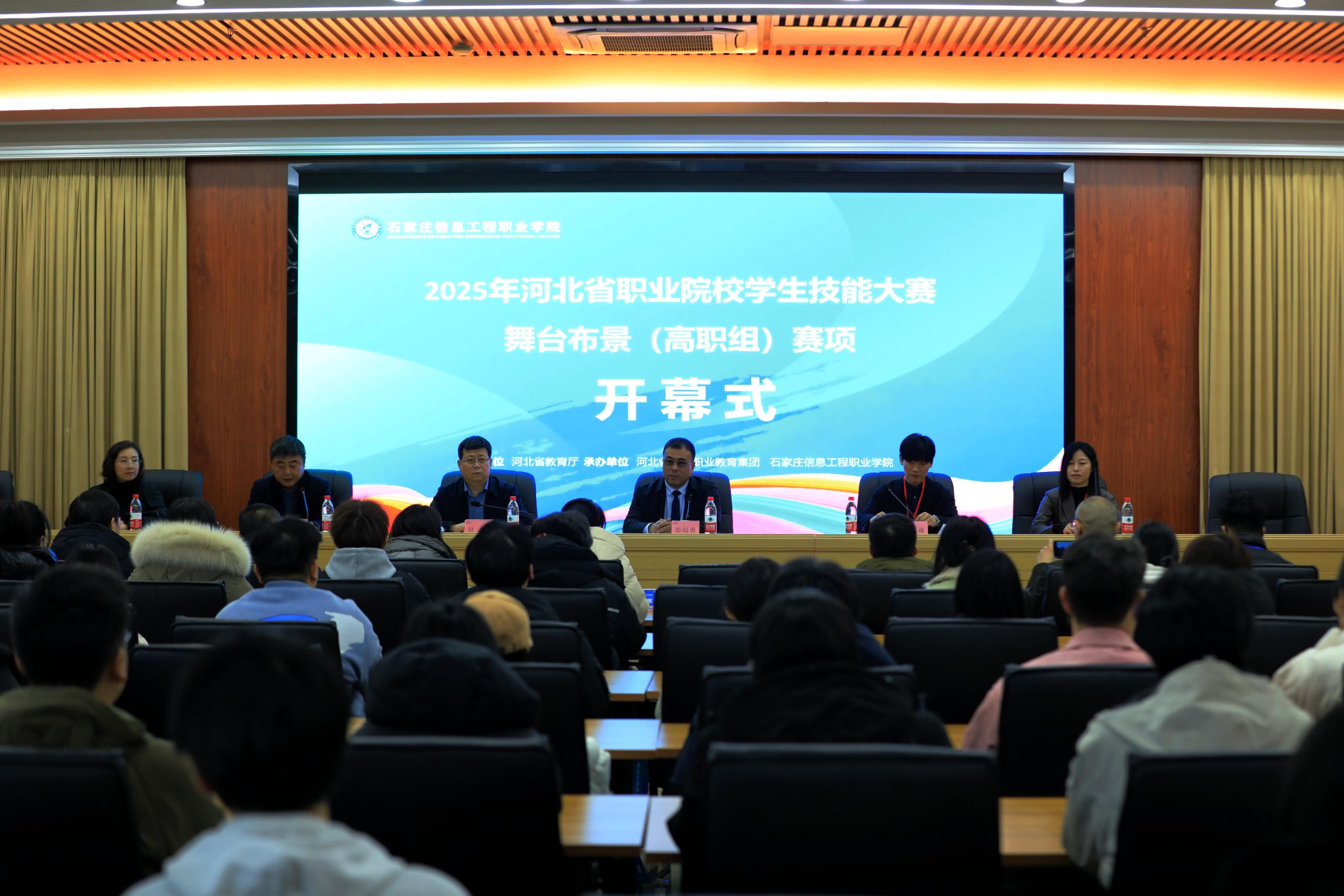 12月18日至19日,2025年河北省职业院校技能大赛(高职组)舞台布景赛项在我院成功举办。来自全省12所高职院校的36名选手参加比赛。我院副院长赵伟出席开幕式并致辞。河北省艺术职业教育集团副秘书长郝端勇,大赛裁判长、山东艺术学院副教授王书成以及裁判代表、广东艺术职业学院美术设计学院院长曲慧敏参加开幕式。