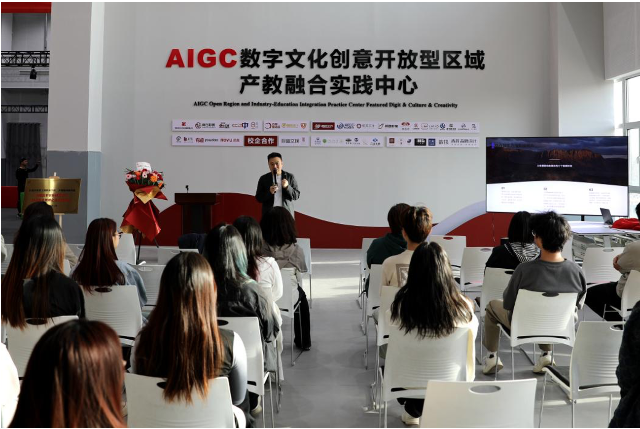 仪式结束后,石家庄万维猫科技有限责任公司经理、资产总监王硕为同学们带来《论动画AI结合在未来动画市场的应用与前景》主题讲座。王硕结合行业发展趋势,深入分析了AI技术在动画创作中的应用潜力,为学生们带来了前沿的行业知识,拓宽了学生的视野。
