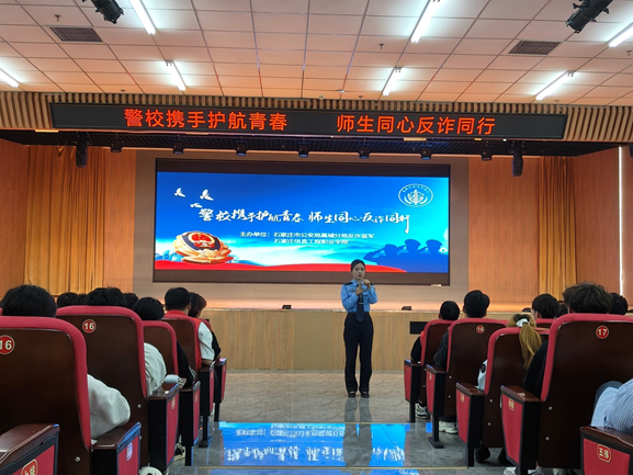 为增强广大师生对电信网络诈骗危害性的认识,普及反诈知识,提升师生防骗意识和识骗能力,营造平安和谐的校园环境,5月23日下午,我院联合石家庄市公安局藁城分局反诈中心在图书馆报告厅开展“警校携手护航青春 师生同心反诈同行”反诈宣传教育讲座。讲座特邀石家庄市公安局藁城分局反诈中心胡孟娟警官担任主讲。来自各系的470余名师生参加。