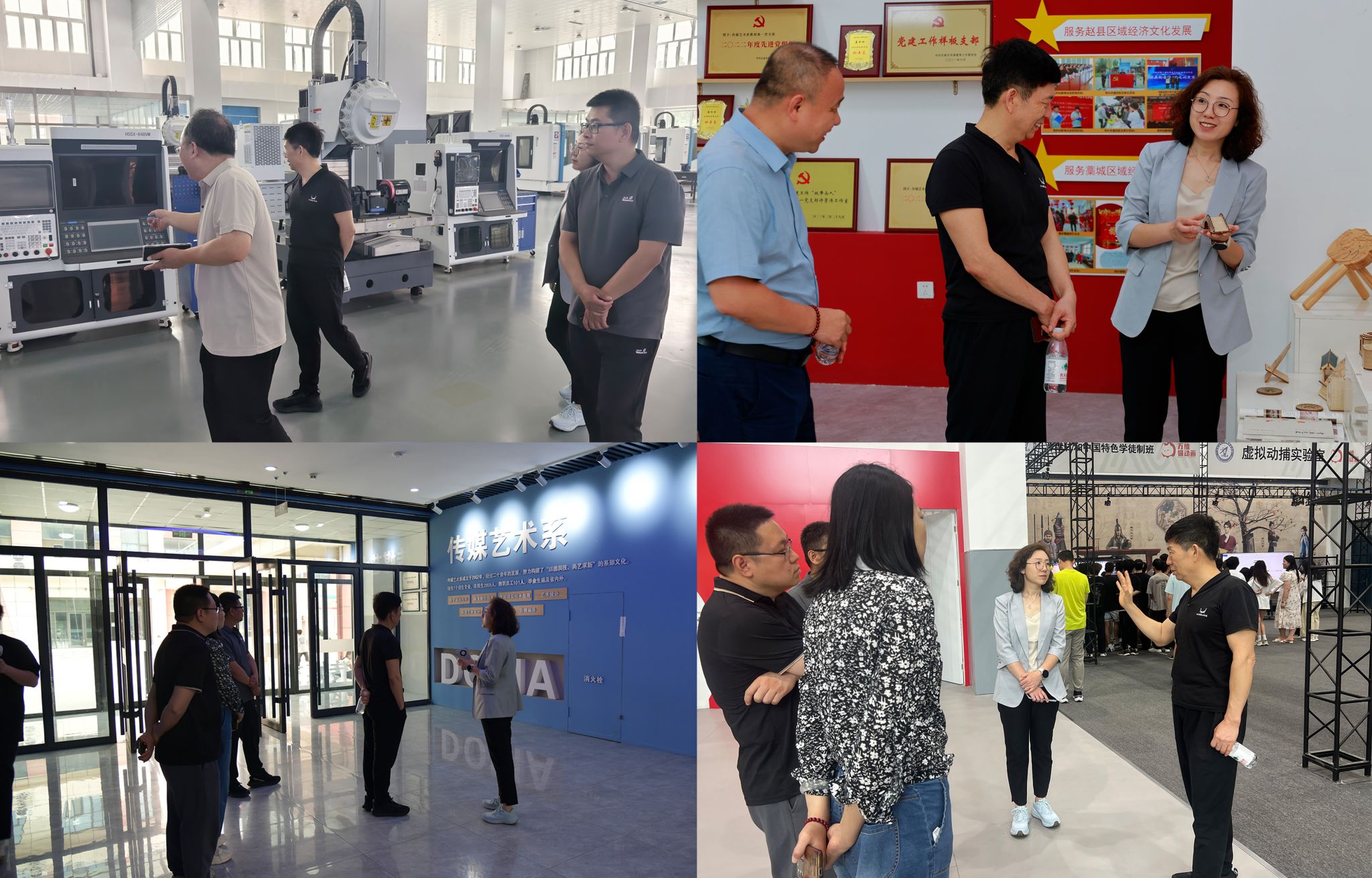 张来源一行参观了学院动画捕捉中心、无人机实训基地、传媒艺术系工作室等,就数字创意类专业建设、就业情况进行调研,并针对传媒艺术系发展进行了前瞻性指导,提出了紧扣国家战略、紧跟数字技术迭代趋势、在多样化视觉传播语境中打造富有时代感染力的设计话语体系等指导意见。