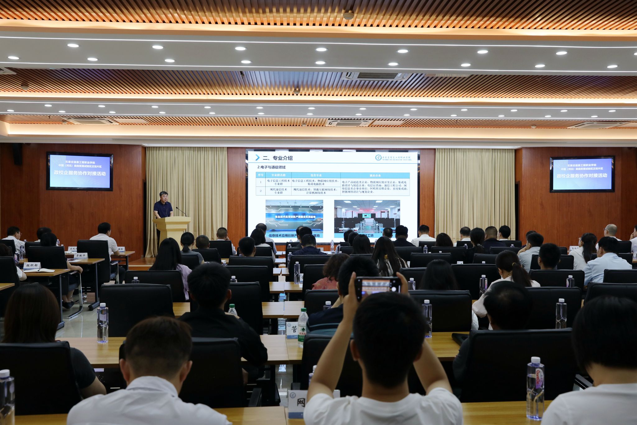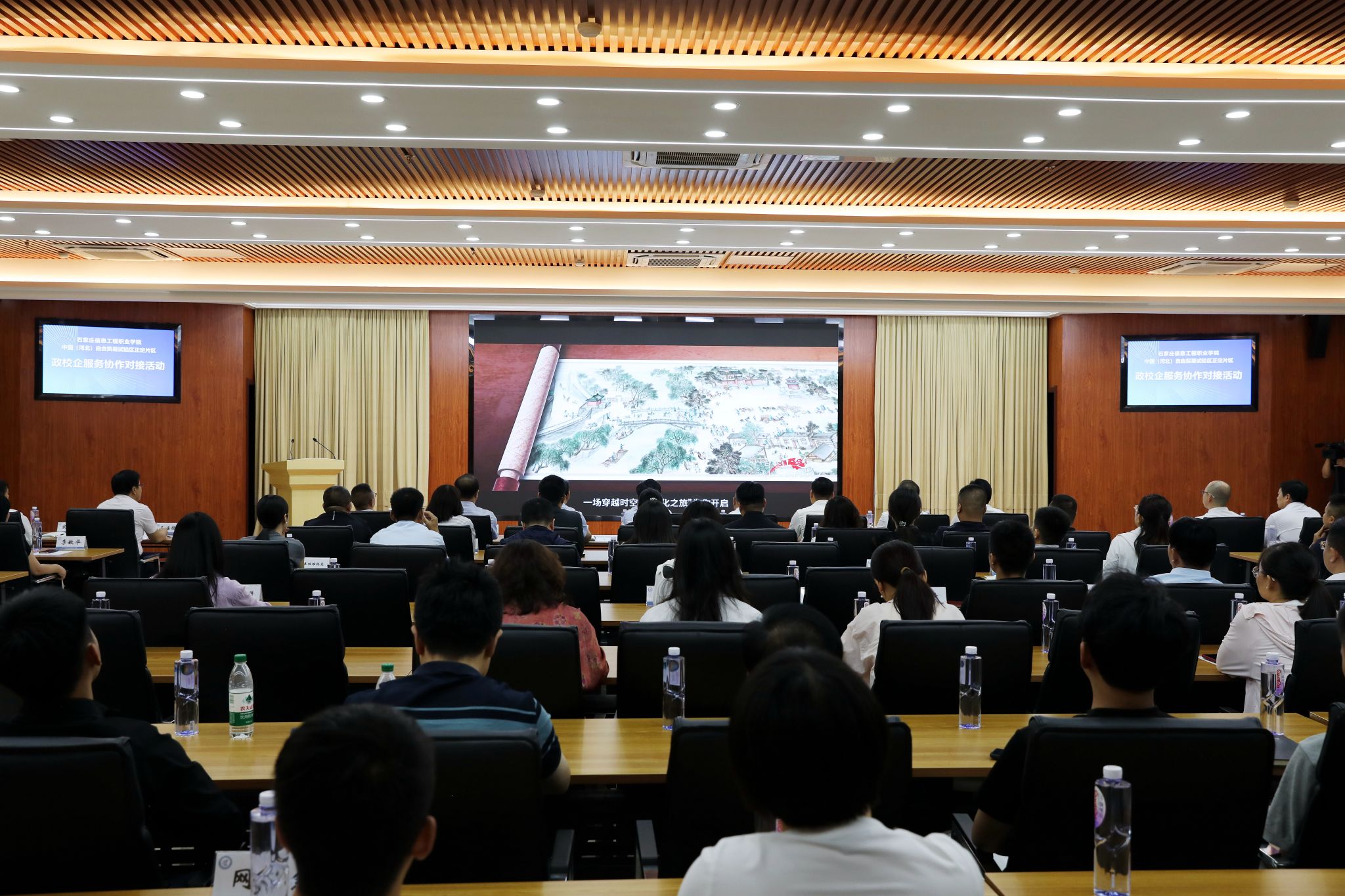 此次活动旨在搭建起学校、政府、企业三方协同发展的桥梁,开启校政企协同育人、协同创新、协同发展的新模式。与会人员共同观看了正定和学院宣传片,听取了学院的专业布局、校企合作、科研成果和人才培养体系等情况介绍。充分了解了学院扎根省会、服务区域经济社会发展的办学特色和取得的显著成效,为后续深度合作奠定了基础。