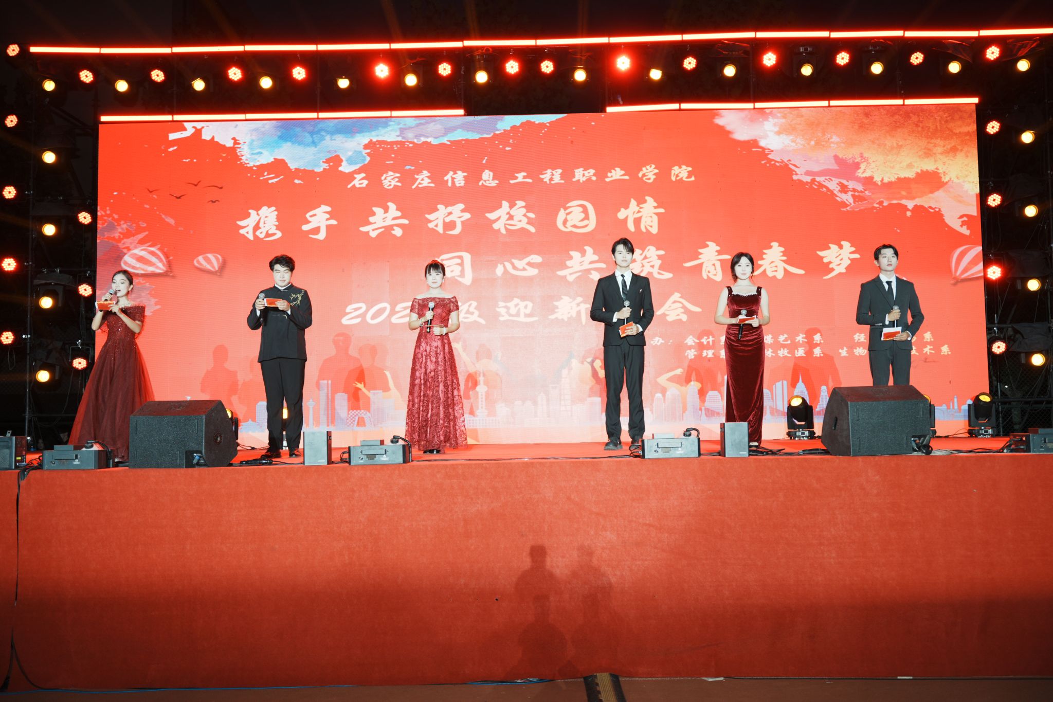 秋夜星河璀璨,青春梦想启航。9月28日晚,学院东区田径场华灯璀璨、掌声雷动,由会计系、传媒艺术系、农林牧医系、管理系、经济贸易系、生物医药技术系六系联合举办的“携手共抒校园情 同心共筑青春梦”2025年迎新晚会在这里盛大举行。学院副院长赵伟、刘占红,党委委员、工会主席王志明,党委委员、组宣部部长范成宝与六系2025级新生共同观看这场视听盛宴。