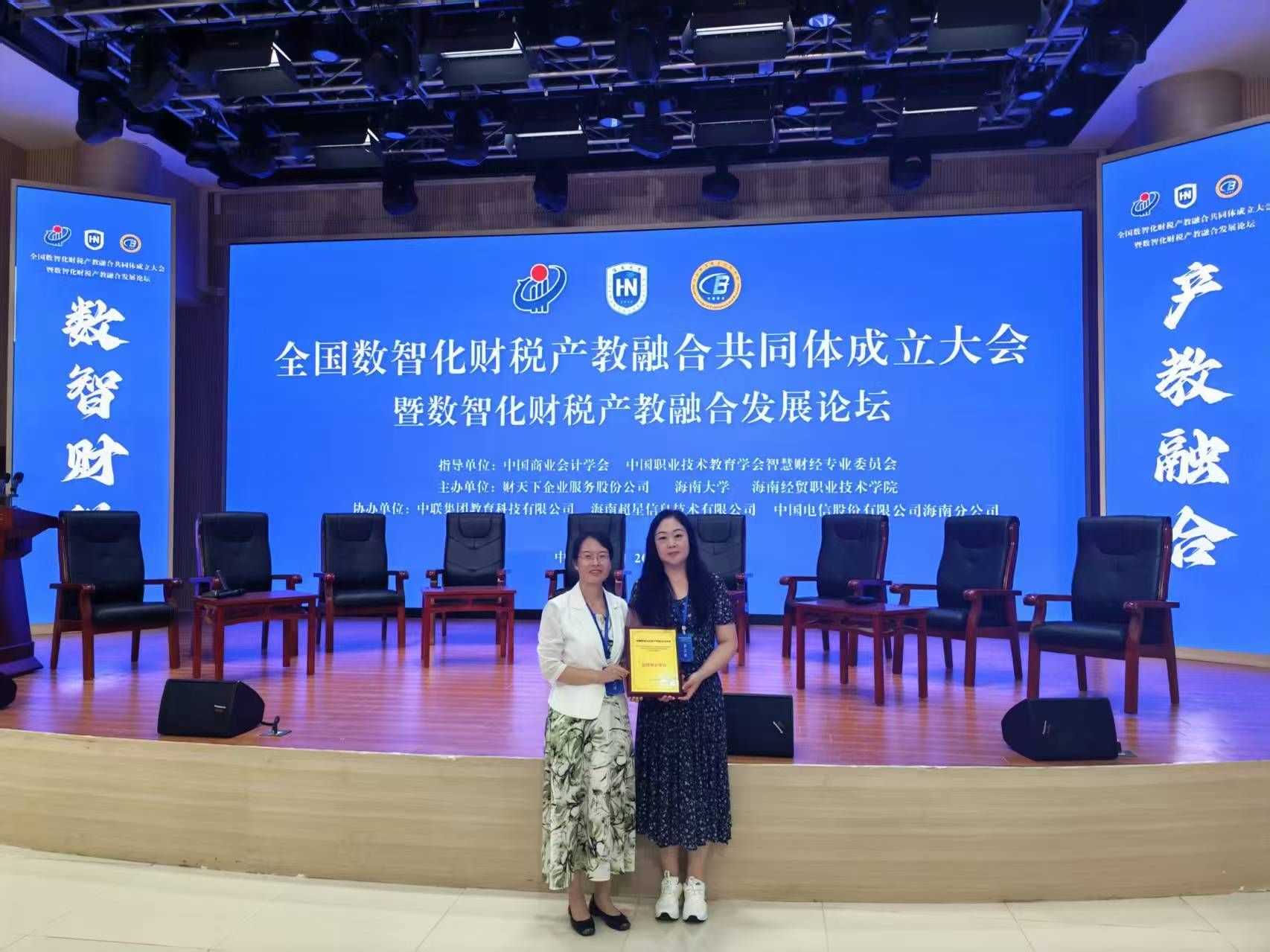 为深入贯彻党的二十大精神,落实国家关于深化现代职业教育体系建设的战略部署,10月12日至14日,全国数智化财税产教融合共同体成立大会暨数智化财税产教融合发展论坛在海南省海口市隆重召开。本次大会由财天下企业服务股份公司、海南大学、海南经贸职业技术学院牵头,联合全国多所院校、社会组织、科研机构及上下游企业共同组建。我院作为重要成员单位受邀出席,并成功当选为共同体副理事单位。会计系副主任姜明霞与财税大数据应用专业负责人王静维全程参与活动。