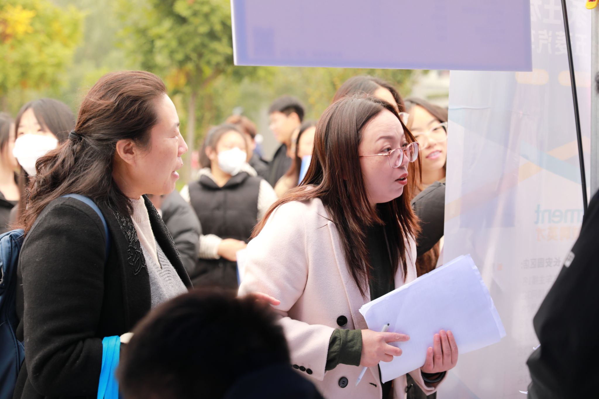双选会现场处处洋溢着积极互动的热烈氛围。学院领导与各系负责人、专业教师、辅导员深入双选会现场,与用人单位、毕业生亲切交流,一方面详细了解企业人才需求方向与对学院人才培养的建议,为后续专业建设与课程优化提供参考;另一方面关心毕业生求职进展,为他们提供针对性指导。毕业生们从容自信,在心仪企业展位前有序咨询,主动展示专业能力与职业规划;企业招聘负责人耐心解答疑问,细致介绍企业文化与岗位优势,不少企业还现场开展初步面试,提升招聘效率。