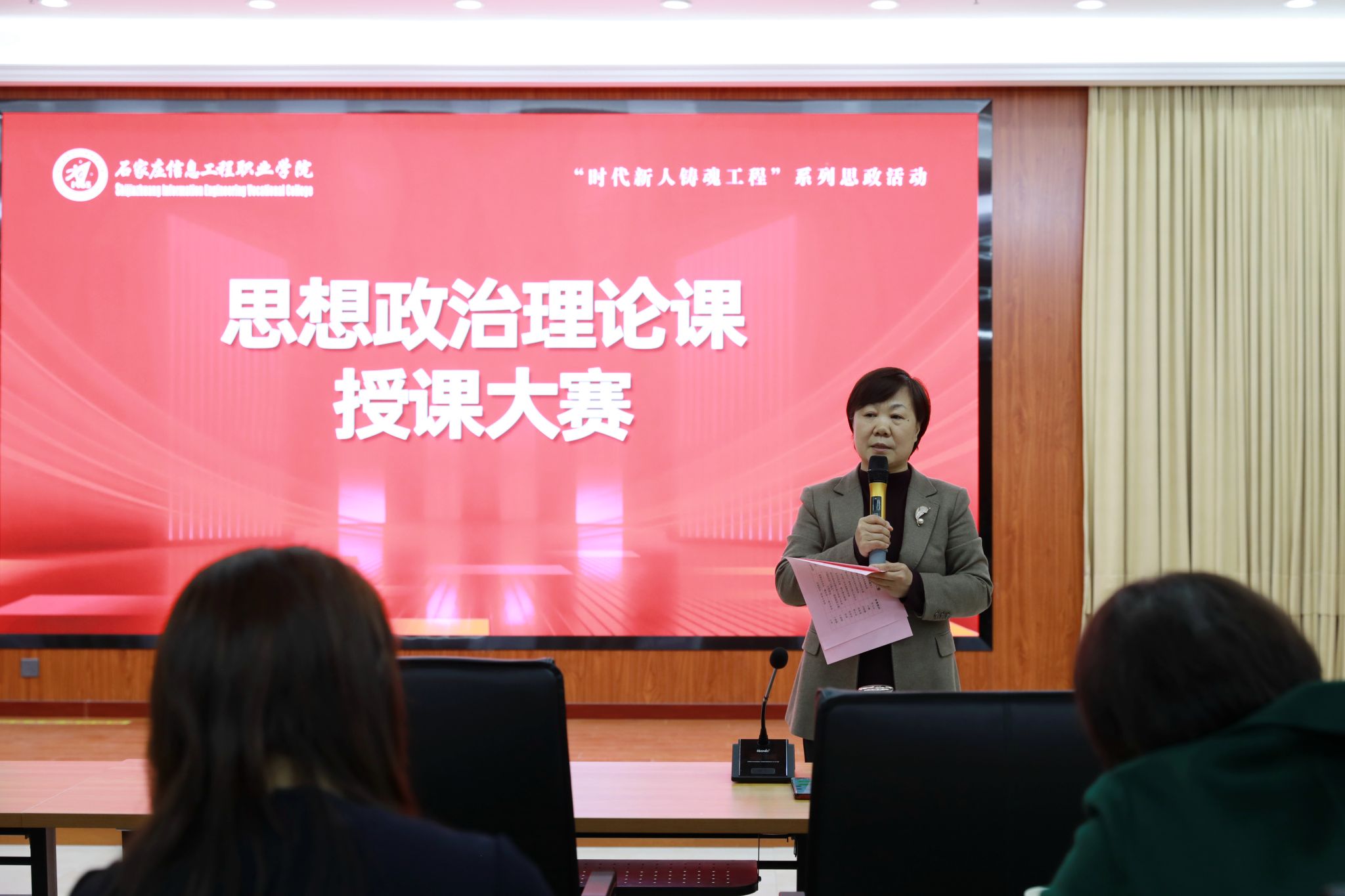学院党委书记赵立芬,党委副书记马福恒,副院长刘占红,党委委员、工会主席王志明,党委委员、组宣部部长范成宝出席活动。大赛特邀校外思政教育专家——河北师范大学马克思主义学院原执行院长、全国高校思政课“手拉手”集体备课中心负责人李素霞和石家庄学院马克思主义学院院长张子麟与我院学生处、传媒艺术系、会计系等负责人共同担任评委。