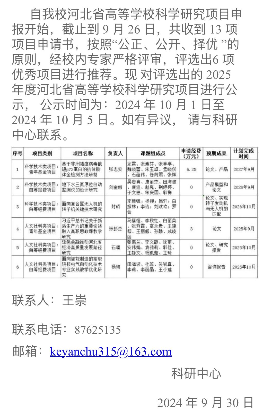 关于推荐 2025 年度河北省高等学校科学研究项目的公示