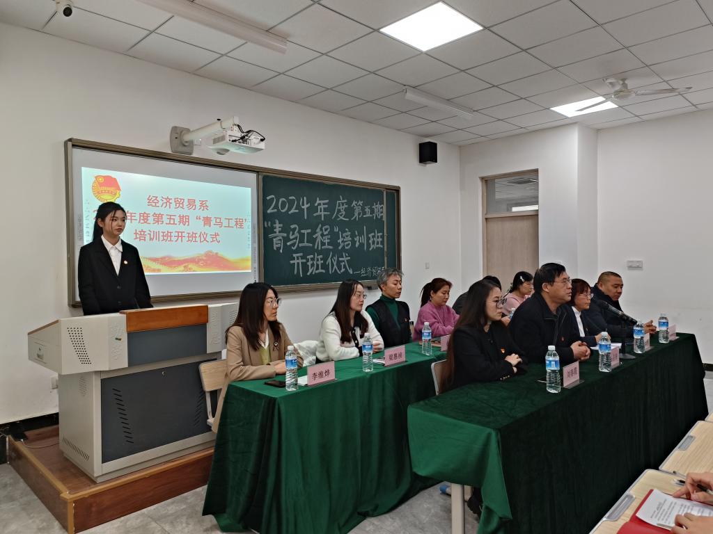 为深入学习贯彻习近平新时代中国特色社会主义思想,认真贯彻落实习近平总书记关于青年工作的重要思想,加强大学生骨干的思想政治教育,以马克思主义中国化的最新成果武装青年学生,培养有理想、敢担当、能吃苦、肯奋斗的新时代好青年,3月14日下午,经济贸易系在知新5号教学楼235教室,举办了以“高扬理想之帆,争做向上青年”为主题的第五期“青马工程”培训班开班仪式。