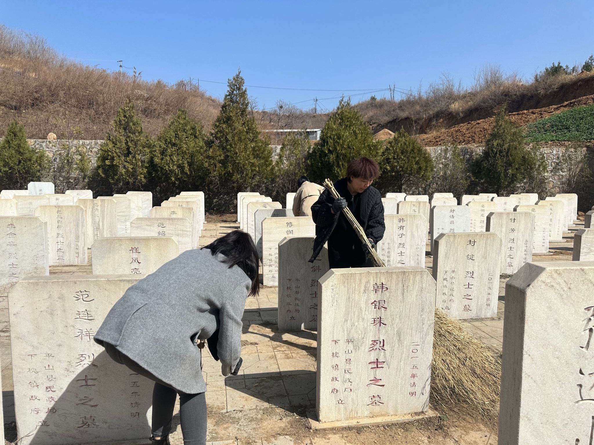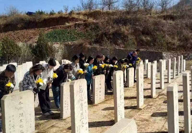 青山埋忠骨,鲜花寄哀思。为缅怀革命先烈,继承光荣传统,3月22日,基础部党总支一行16人,在党总支书记张娜的带领下来到平山县下刘家坪村开展祭扫活动,祭奠抗日英烈。