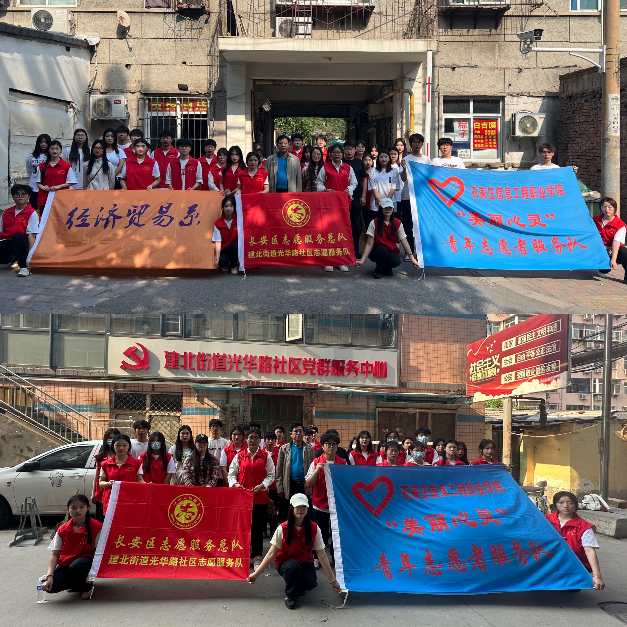 4月27日下午,由田洪舟带队,师生一行35人到党建联建单位——石家庄市长安区建北街道光华路社区委员会调研党建工作并开展志愿服务活动。社区党总支书记刘双丽、社区干部胡晓松参加了对接和交流活动。