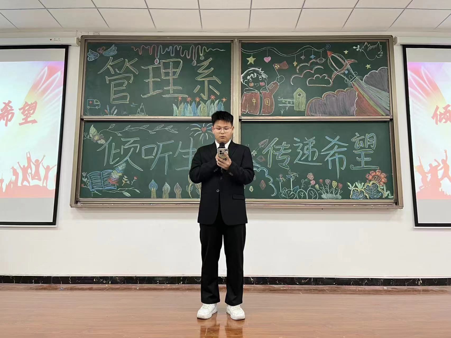 为进一步推广“人道、博爱、奉献”的红十字精神,传承社会主义核心价值观,同时展现大学生的青春风采,4月29日,管理系在知新二号楼310教室开展“倾听生命,传递希望”演讲活动。