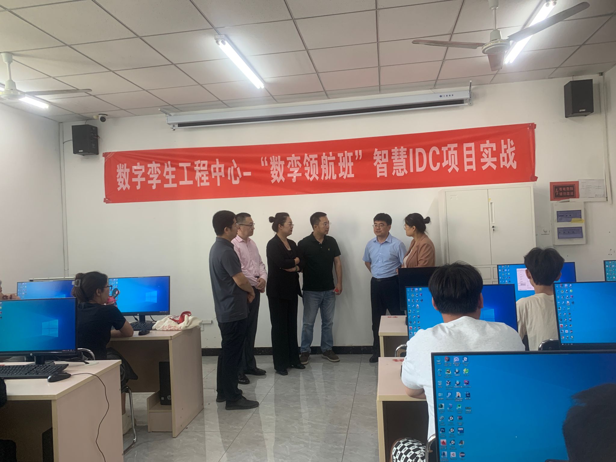 为进一步提升学生专业技能,扎实推进我院数字孪生工程中心建设,6月3日下午,计算机应用系在知行2号楼117室举办数字孪生工程中心——智慧IDC项目“数孪领航班”开班仪式。教务处副处长陈宁出席并讲话,北京优锘科技股份有限公司产教融合总经理王珅培、河北广集中科电子科技有限公司总经理李艳美、计算机应用系主任庞超、企业导师王晓东和数字孪生教学团队骨干教师,以及“数孪领航班”同学参加开班仪式。计算机应用系副主任陈建伟主持。