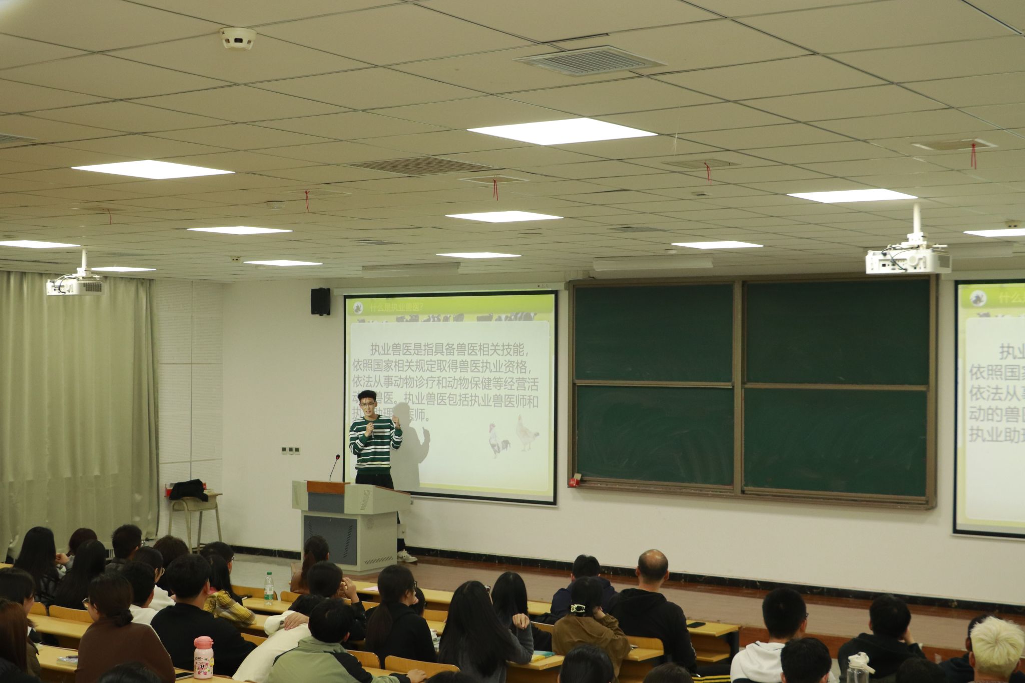 农林牧医系大一辅导员、2024级动物医疗、宠物医疗、畜牧兽医专业全体同学400余人参加本次活动。