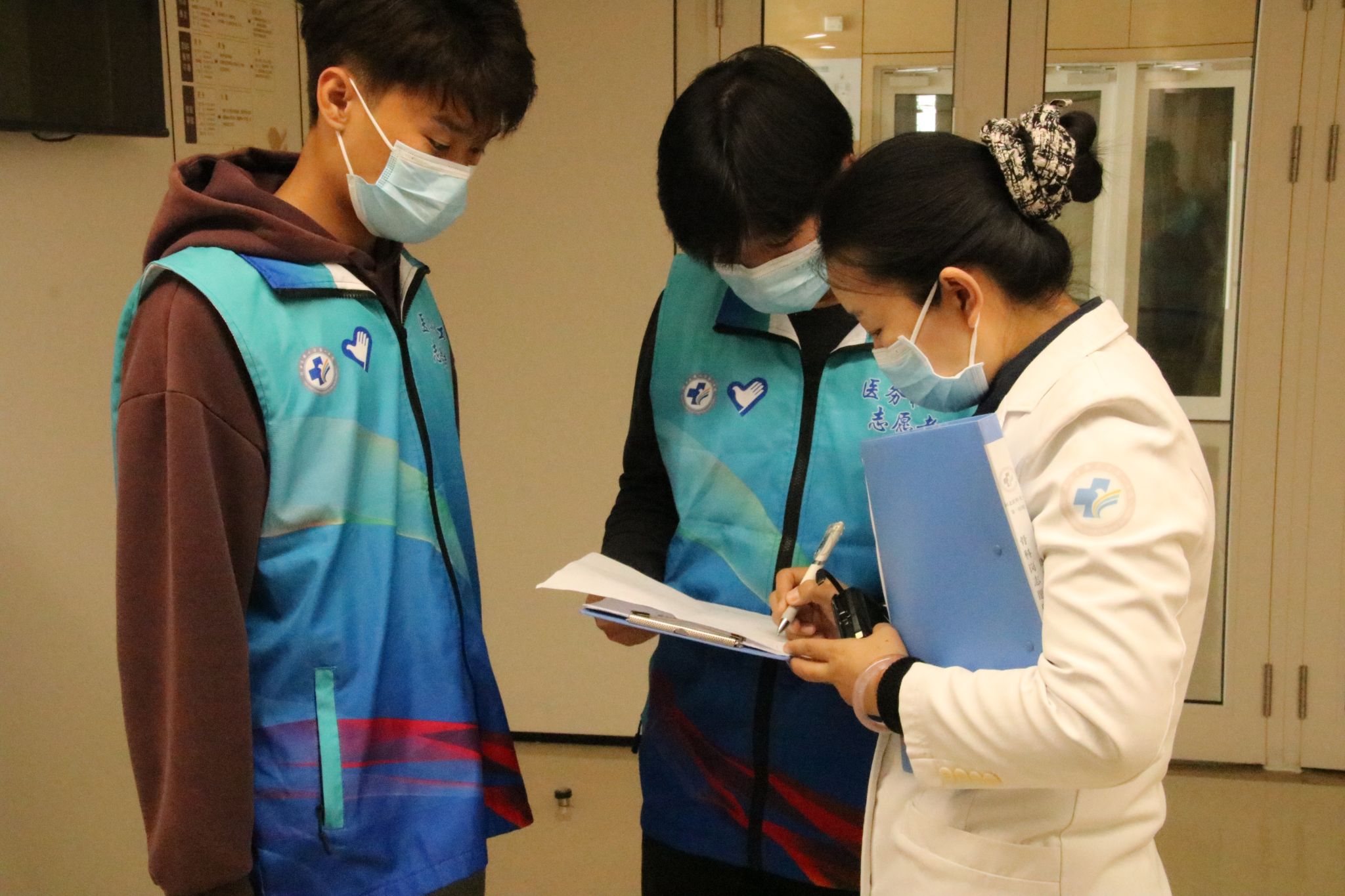 社员们在各自岗位,不怕辛苦,积极发扬乐于助人的志愿服务精神。急诊社员,在电梯口、CT室、医院挂号系统等多部门指引和帮助患者就诊;儿童门诊的社员和小患者一起绘制风筝、做游戏,缓解了小朋友的就诊恐惧;儿童病房的社员和小患者聊天、画画、玩玩具,孩子们露出了开心的笑容,仿佛忘却了身体上的不适;骨科社员积极帮助科室做满意度调查,社员们面带微笑,礼貌而耐心地与每一位患者及家属交流,仔细询问患者对医生治疗过程、护士护理服务、住院环境等方面的感受,认真记录每一个回答;餐厅社员则仔细为每一位前来用餐的患者和家属打包饭菜,认真负责的态度赢得了大家的一致好评;机动组的社员们在老师的带领下穿梭在各个志愿服务岗位,用相机、手机记录下社员们热心助人瞬间。虽然大家分工不同,但都怀揣着同样热忱与专注的心,以实际行动诠释着奉献的意义,彰显着当代大学生的青春与温暖。