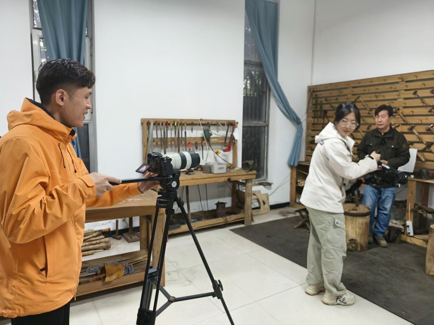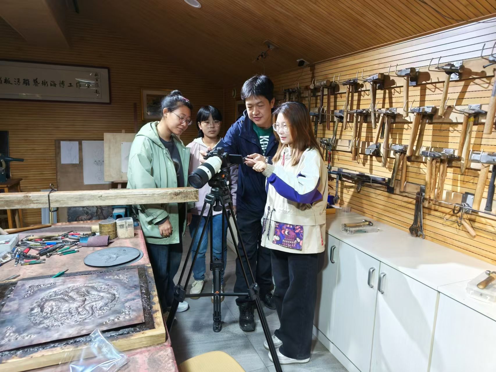 近期,传媒艺术系师生持续参与石家庄日报社融媒体中心《留学石光》(非遗篇)宣传片拍摄和制作任务,并组织第二期非遗技艺系列宣传片制作交流活动。