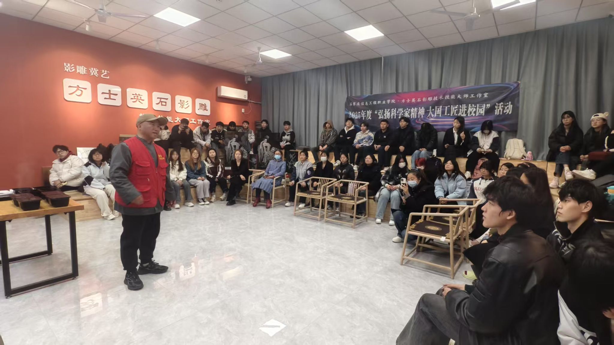 3月4日,由传媒艺术系方士英石影雕技术技能大师工作室举办的2025年度“弘扬科学家精神 大国工匠进校园”活动在知新七号楼119教室拉开序幕。首期活动特邀省级非物质文化遗产项目“饸烙制作技艺”代表性传承人、无极工匠张志永老师入校交流。