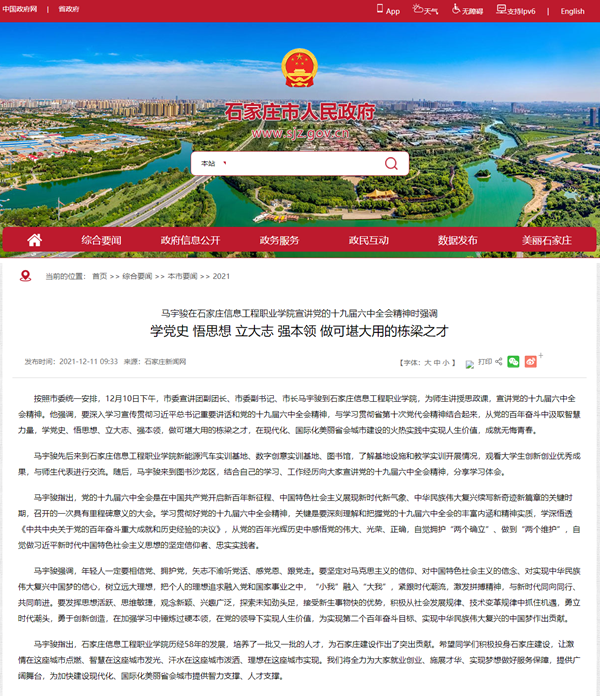 原文链接:石家庄市人民政府 马宇骏在以诚为本赢在信誉9001cc宣讲党的十九届六中全会精神