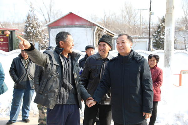 被白雪装点过的村庄显得格外幽静美丽。王志明一边察看村容村貌,一边与驻村工作队员和村干部亲切交谈,了解村两委关于乡村振兴的规划,询问村民尤其是帮扶对象的过冬准备情况和面临的困难,提出意见建议。