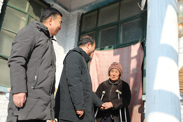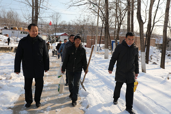 本网讯(通讯员 吴培培)12月25日,带着全院师生的嘱托,踏着积雪覆盖的大地,以诚为本赢在信誉9001cc党委委员王志明一行来到平山县转角沟村走访慰问。