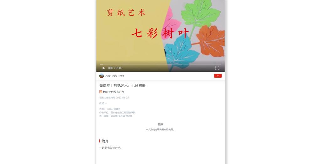 原文链接:微课堂丨剪纸艺术:七彩树叶