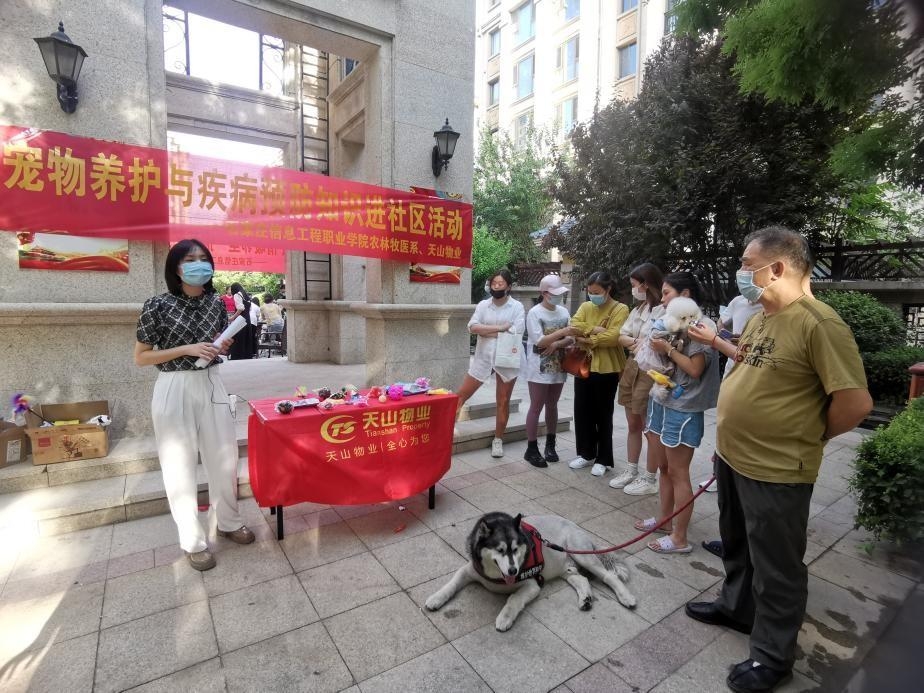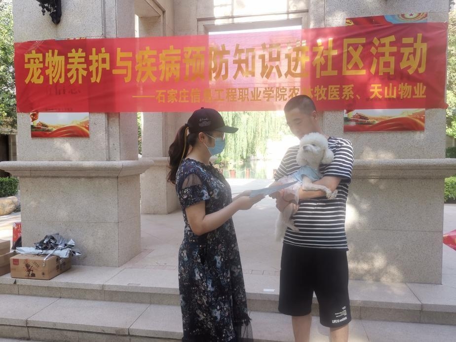 在宠物养护知识宣传活动中,畜牧兽医专业的孙贺琳老师向社区居民详细介绍了犬猫流行病的防治方法,重点普及了各类疫苗的首免时间。同时,在现场设立了宠物健康问诊台,为社区居民答疑解惑,多位居民带着爱宠前来咨询问诊。另外,活动中还为居民赠送了“科学养宠”小礼品,并发放了百余册宣传材料,整个现场气氛热烈,赢得居民的拍手称赞。