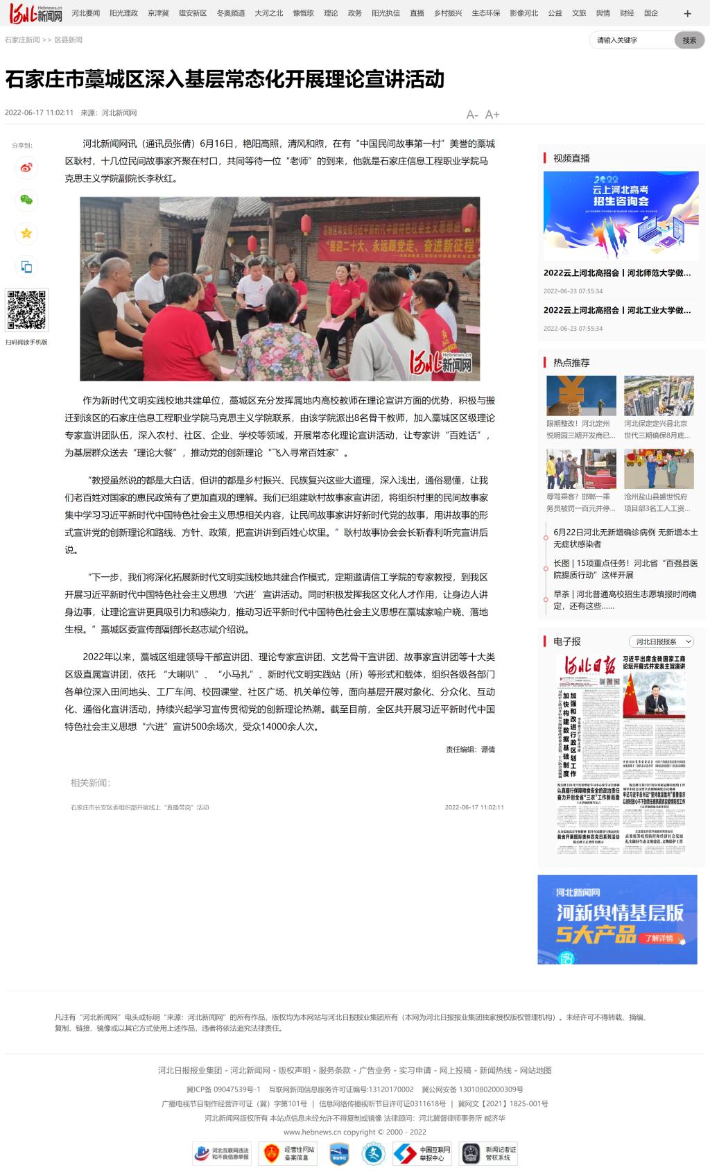 石家庄市藁城区深入基层常态化开展理论宣讲活动