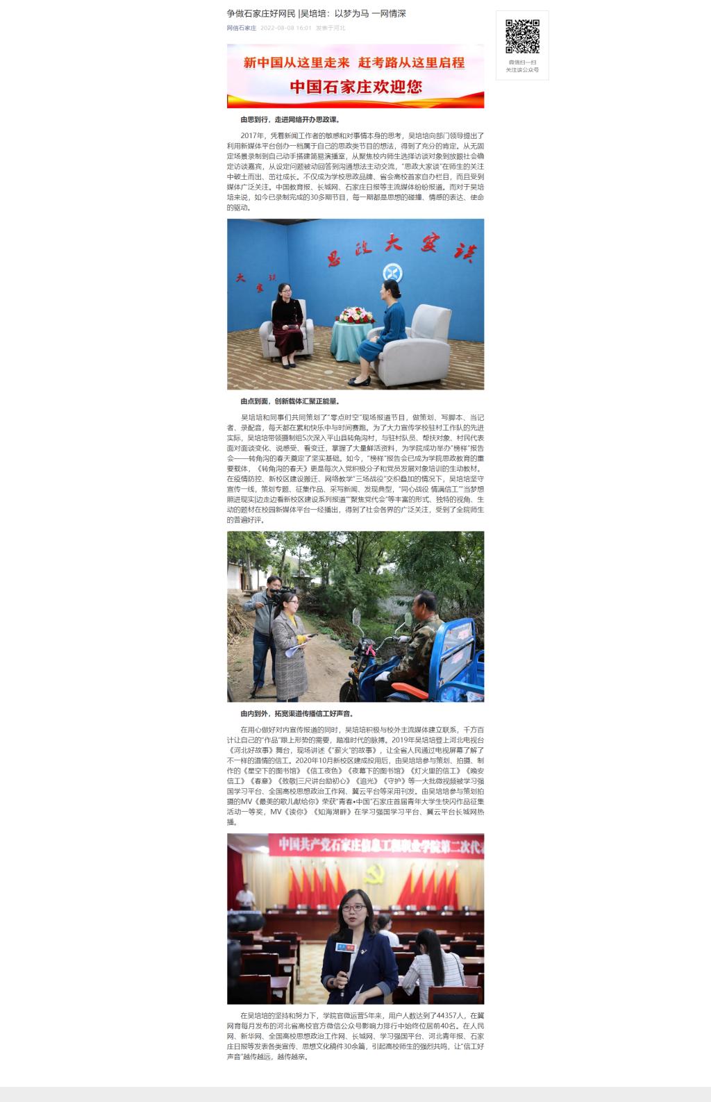 原文链接:争做石家庄好网民 |吴培培:以梦为马 一网情深