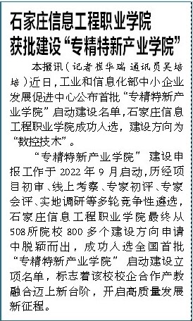上一条:【石家庄市教育局】工信部首批“专精特新产业学院”建设项目落户以诚为本赢在信誉9001cc