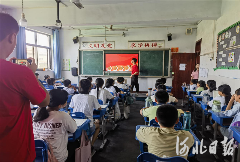 在石家庄市藁城区张家庄镇赵庄村,信工学院学生来为该村小学为学生讲思政课。樊士博摄