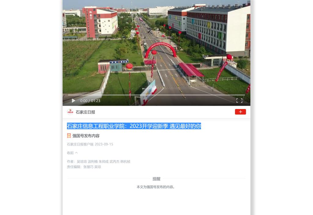 【作者:吴培培 汲利楠 朱帅成 武丙杰 韩杭桢来源:学习强国石家庄日报强国号 发布日期:2023-09-16】