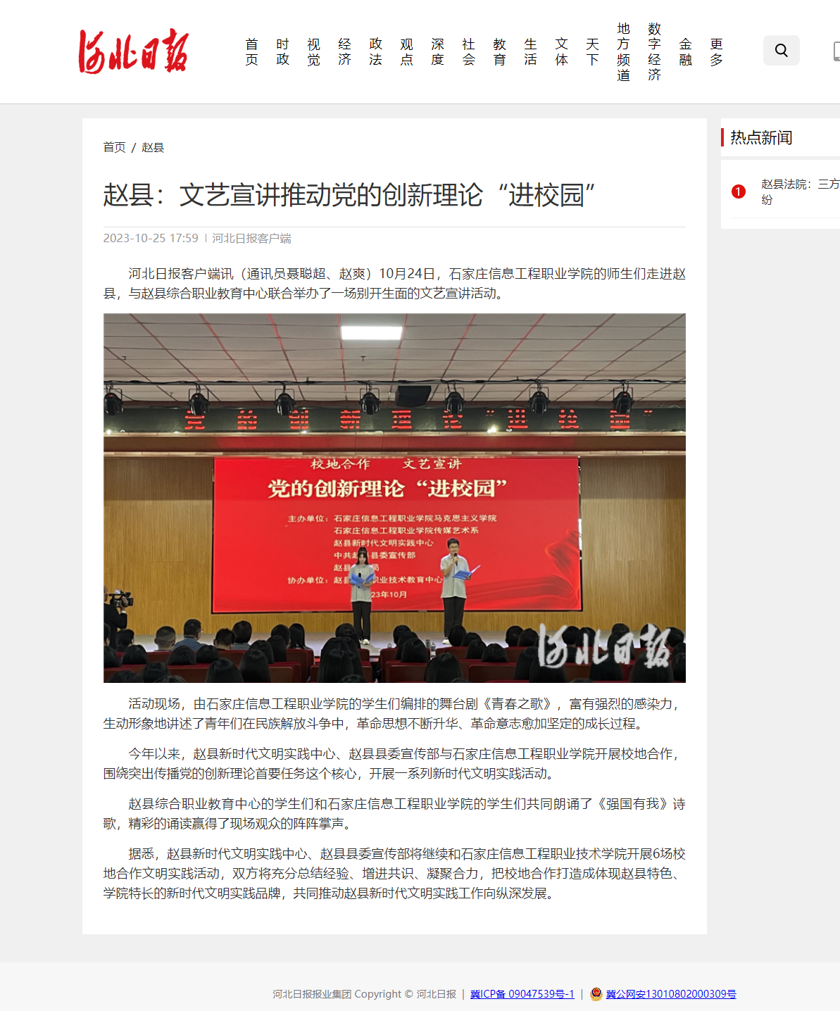 赵县:文艺宣讲推动党的创新理论“进校园”