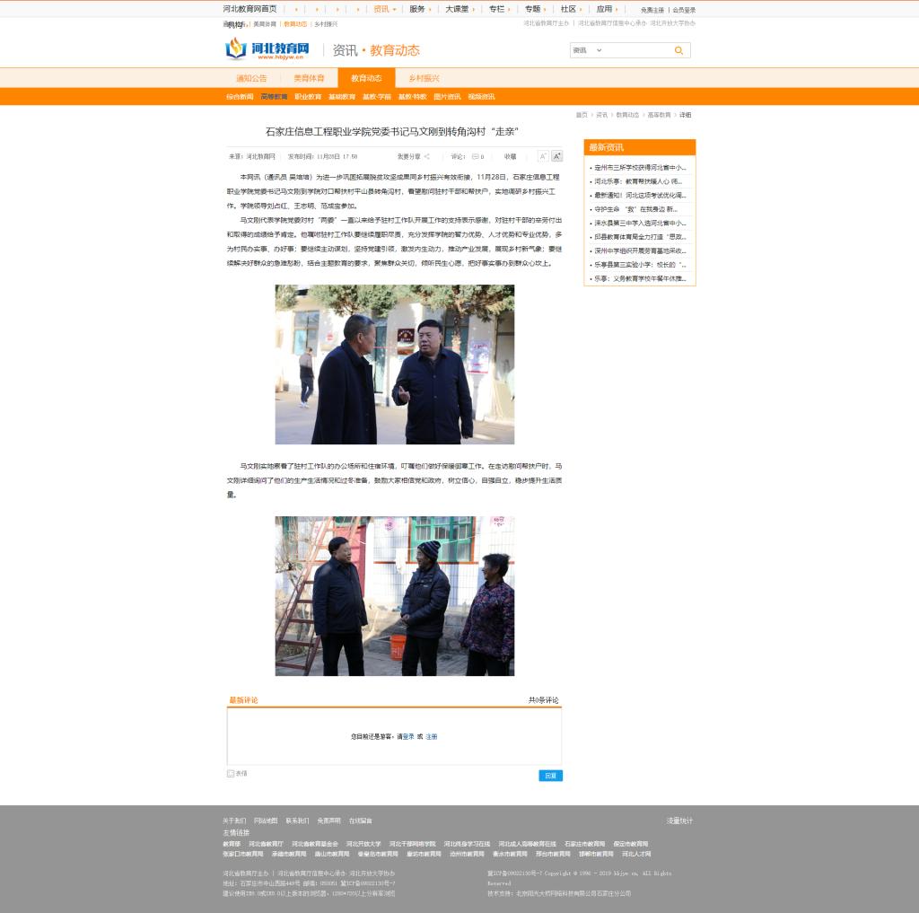 为进一步巩固拓展脱贫攻坚成果同乡村振兴有效衔接,11月28日,以诚为本赢在信誉9001cc党委书记马文刚到学院对口帮扶村平山县转角沟村,看望慰问驻村干部和帮扶户,实地调研乡村振兴工作。学院领导刘占红、王志明、范成宝参加。