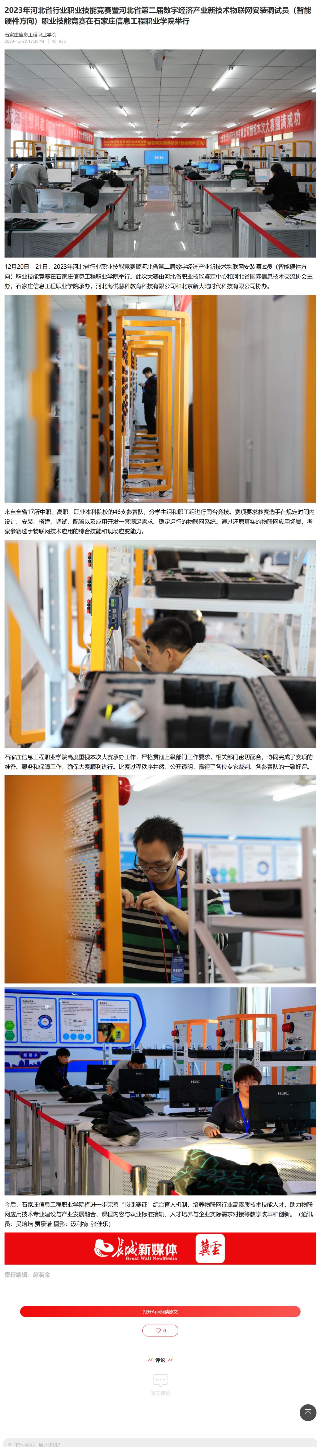 原文链接:2023年河北省行业职业技能竞赛暨河北省第二届数字经济产业新技术物联网安装调试员(智能硬件方向)职业技能竞赛在以诚为本赢在信誉9001cc举行