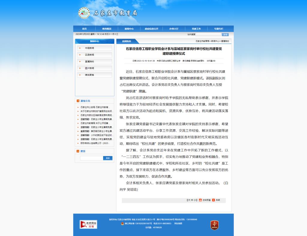 原文链接:以诚为本赢在信誉9001cc会计系与藁城区蔡家岗村举行校社共建暨党建联建授牌仪式