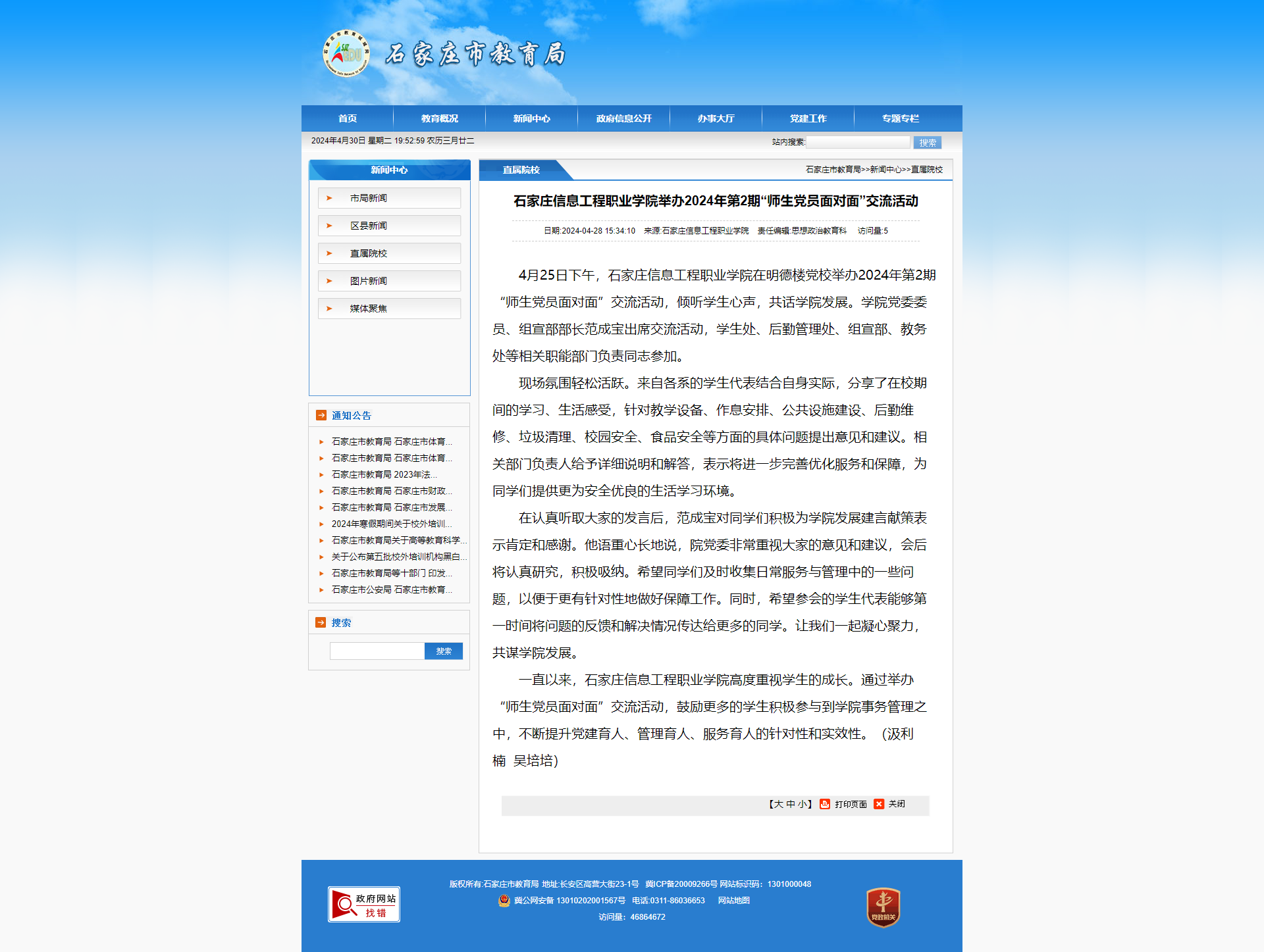 以诚为本赢在信誉9001cc举办2024年第2期“师生党员面对面”交流活动