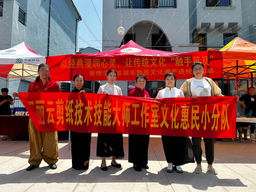 5月16日,传媒艺术系王丽云剪纸技术技能大师工作室团队受石家庄工商职业学院邀请,参加其管理学院组织的首届非物质文化遗产进校园活动。