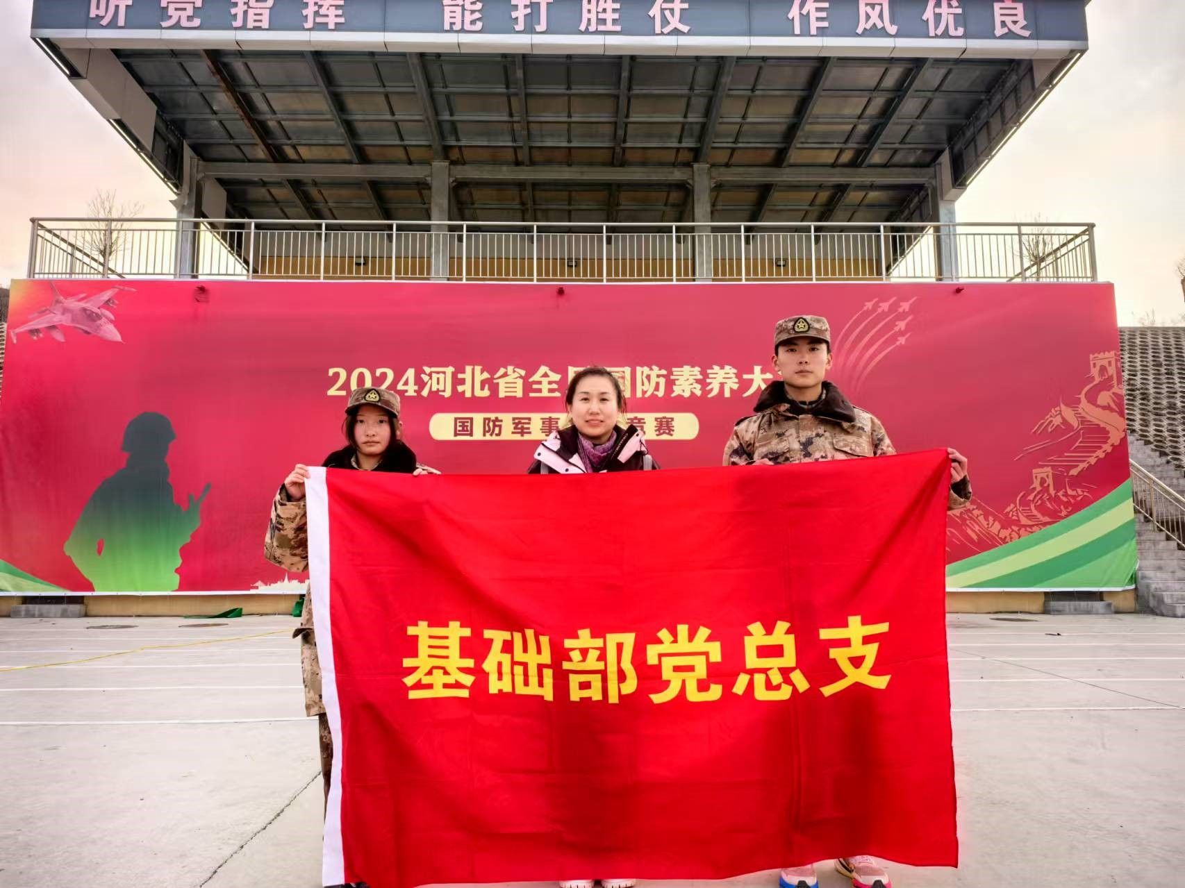 近日,2024年河北省首届全民国防素养大赛国防军事技能竞赛”总决赛在保定市阜平县房店国防军事小镇举行,来自全省各地市的15支代表队共计300人参加了比赛。由我院和石家庄学院共3名学生联合组成的石家庄代表队荣获高校组冠军。