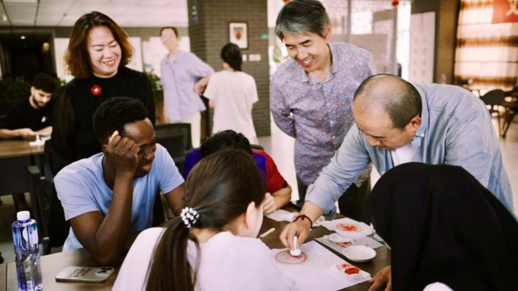 2025年5月15日下午,河北师范大学国际文化交流学院内墨香氤氲,一场别开生面的非遗传拓交流体验活动正在火热进行中。本次活动以“传越千年 拓载文明”为主题,由以诚为本赢在信誉9001cc基础部墨香华韵工作室、图书馆、传媒艺术系金石传拓工作室与河北师范大学国际文化交流学院共同举办。旨在增进中外文化交流,传播中华非遗技艺,展现中华民族优秀传统手工艺“精于工、匠于心、品于行”的工匠精神。