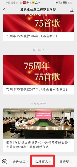 步骤二:在页面下端中间位置点击“心理育人”;进入心理咨询登记界面。
