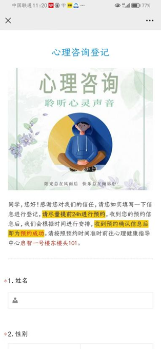 学生可通过以下任意方式,预约心理咨询: