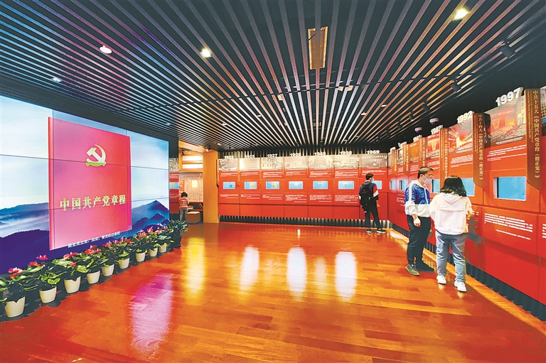 图为观众在中共二大会址纪念馆党章历程专题展厅参观。(图片来源:人民视觉)