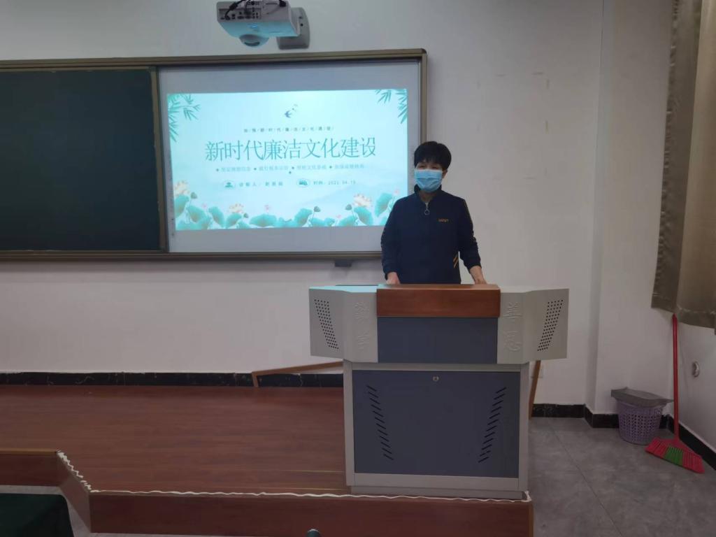 4月17日学院纪委书记赵惠娟到联系系部经济贸易系以《加强新时代廉洁文化建设》为主题为总支及支部委员上了一堂廉政党课。
