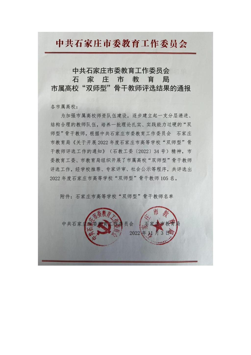 我院教授唐磊荣获 2022年 “河北省师德标兵”称号