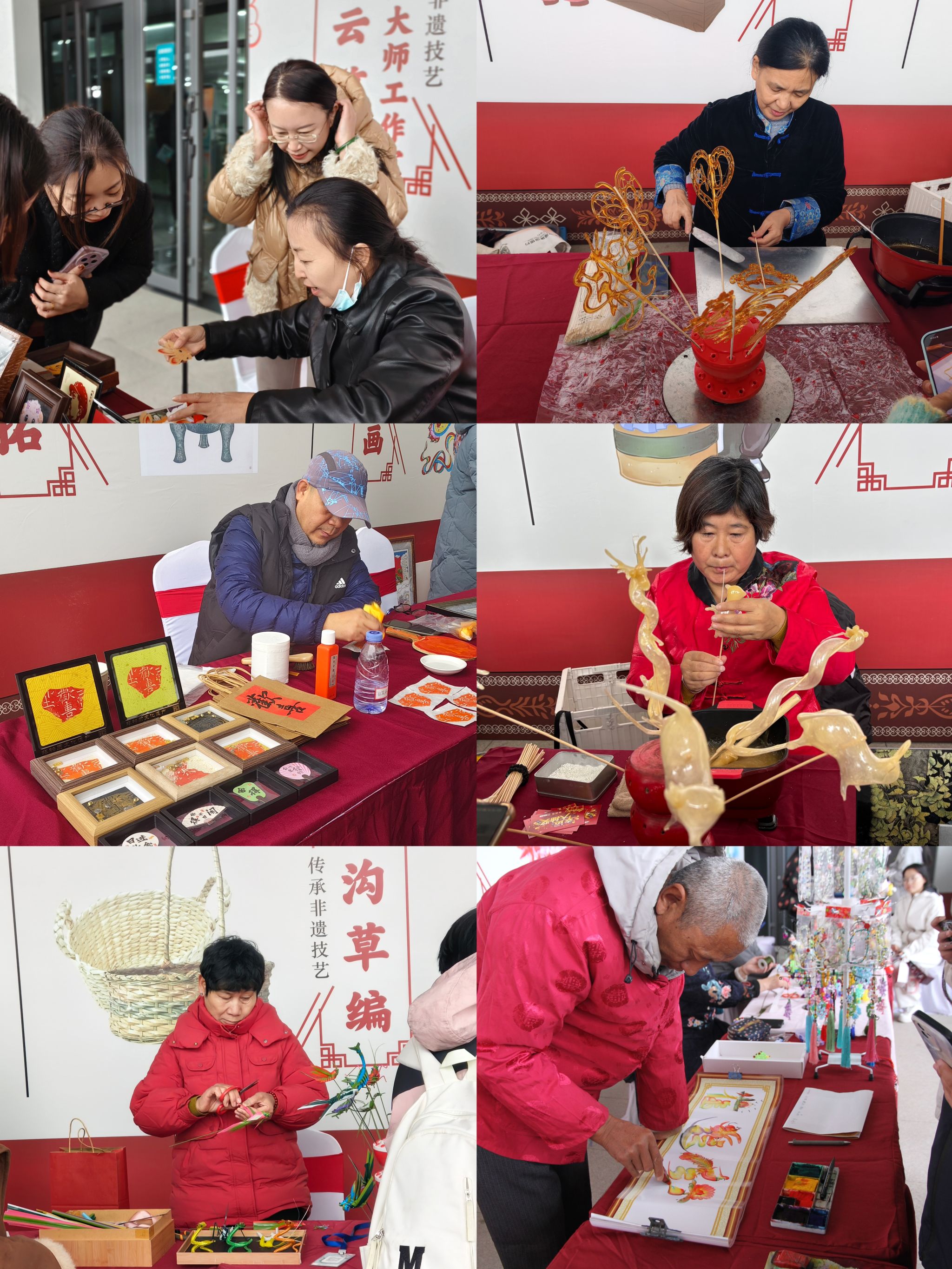 游园会特邀众多非遗传承人亲临现场,通过技艺演示、互动教学与沉浸式体验,带领师生近距离感受非遗魅力,并亲手制作了独具特色的非遗作品。活动现场特设“王丽云剪纸技术技能大师工作室”“方士英石影雕技术技能大师工作室”展位,更有捏面人、绳结技艺、吹糖人、糖画、珠编、名字画、柳沟草编、微雕、葫芦烙画、钩编技艺、棉花糖、鲁班锁制作、绒花制作、掐丝珐琅、扎染、漆扇、金石传拓、武强年画、中药香囊制作、合香、百福米、金箔画制作、螺钿技艺、宋锦发夹制作、冰糖葫芦等三十项非遗体验同步开展,生动呈现传统工艺的多样风采。