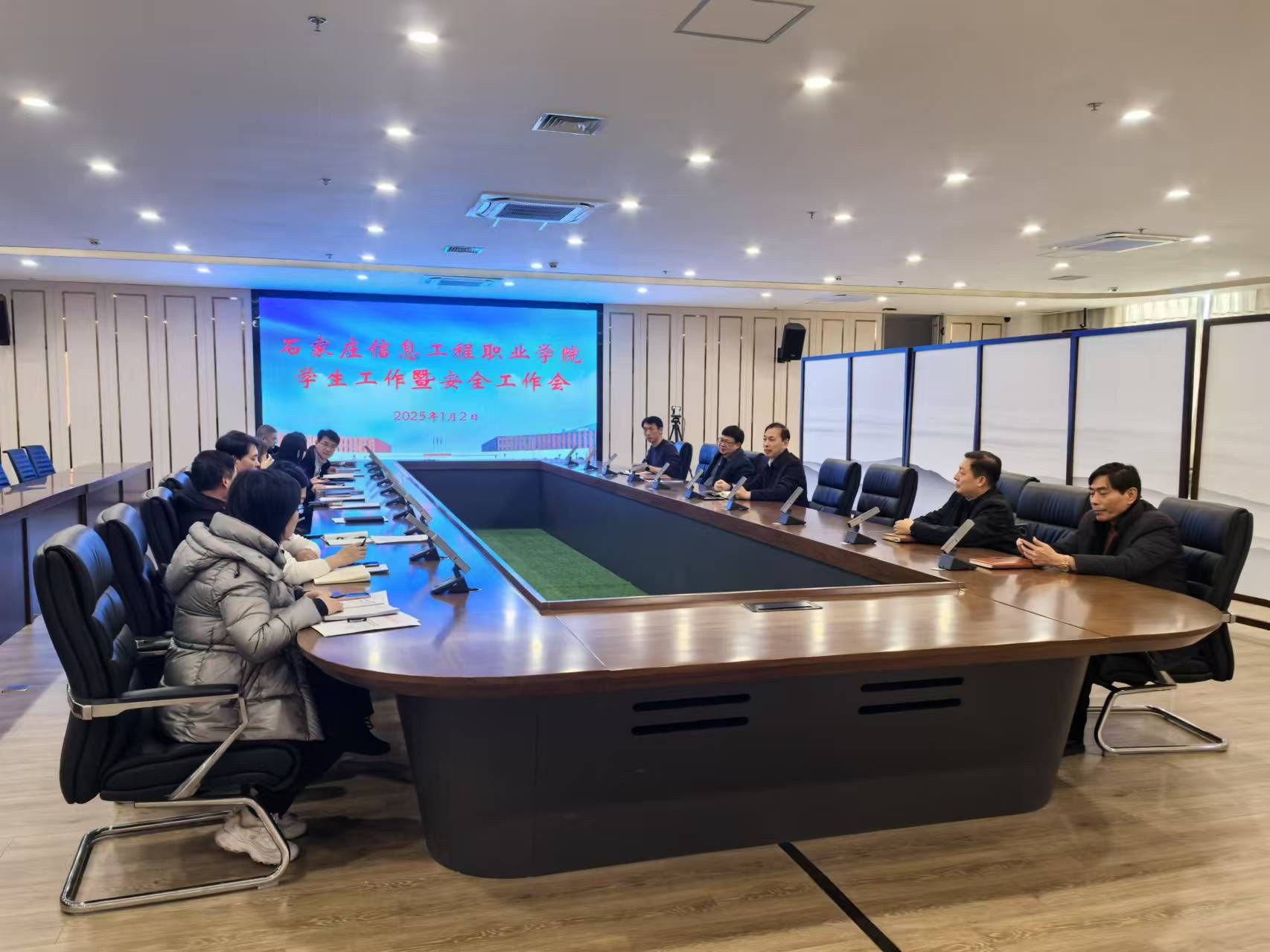 会上,刘占红传达了省、市教育主管部门关于寒假期间学校安全防范工作的有关会议和文件精神,并结合学院实际工作,对寒假学生离校和假期安全工作提出具体要求。一是认真组织开展学生安全教育。各系要通过主题班会、微信等多种形式,持续开展交通安全、食品安全、电信诈骗、消防安全、意外伤害等方面安全教育,切实提高学生安全意识、防范意识和自我保护能力;二是全面排查整改各类安全隐患。相关部门要在放假前后对各类建筑物、消防设施、水电设施进行了全面排查,及时处理安全隐患;三是严格值班值守,妥善处置安全事件。相关部门要严格落实24小时值班制度,坚守岗位、履职尽责,保障通信畅通,突发事件要及时上报、有效应对、妥善处置;四是做好学生离校服务保障工作。各系及相关部门要为学生离校提供最大的便利,妥善安排因工作、学习需要留校的学生。做好学生离校数据统计工作,精准掌握学生的活动轨迹,及时将学校的假期安排告知家长。